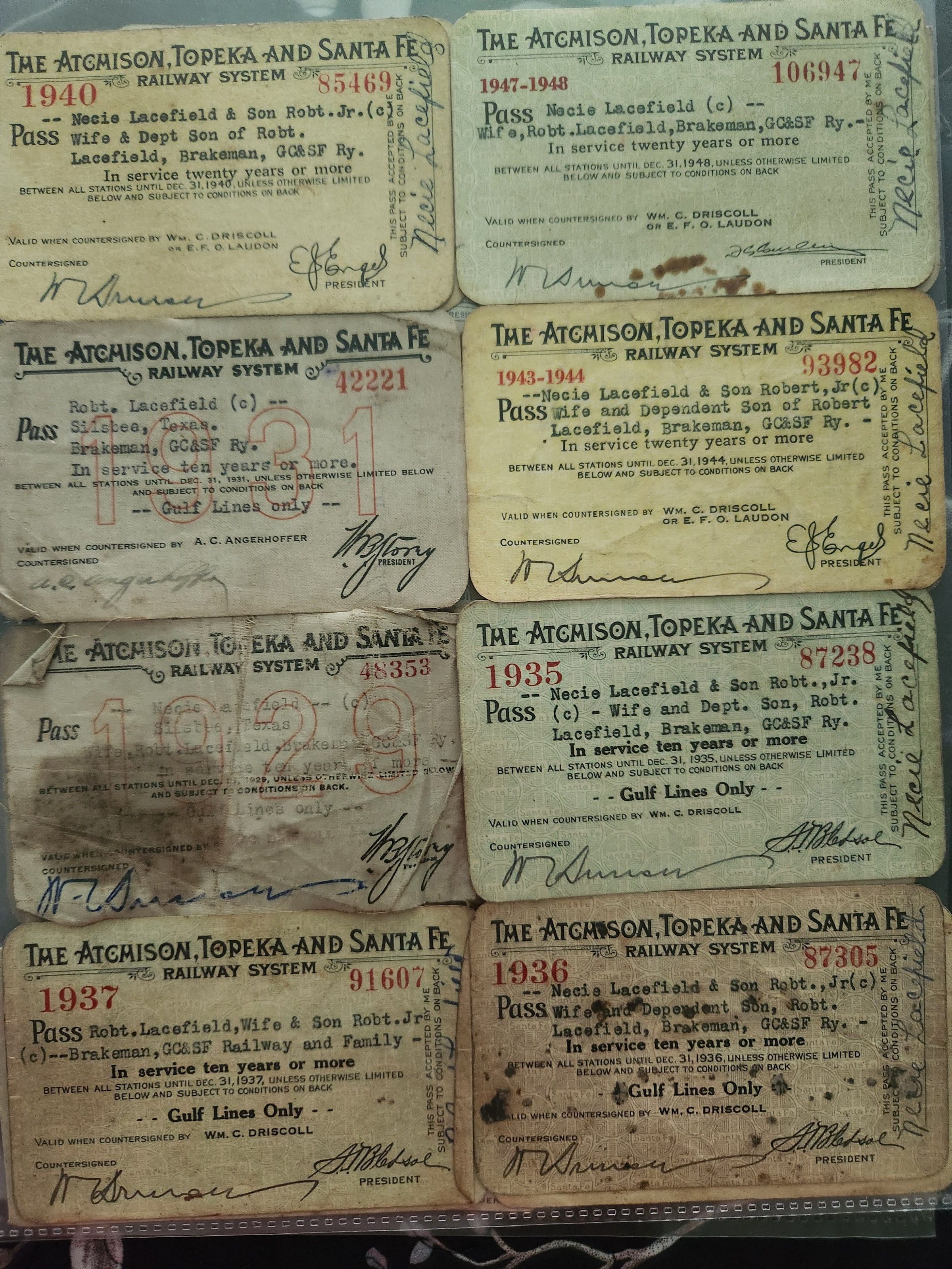 Train passes for Necie Lacefield - Brakeman