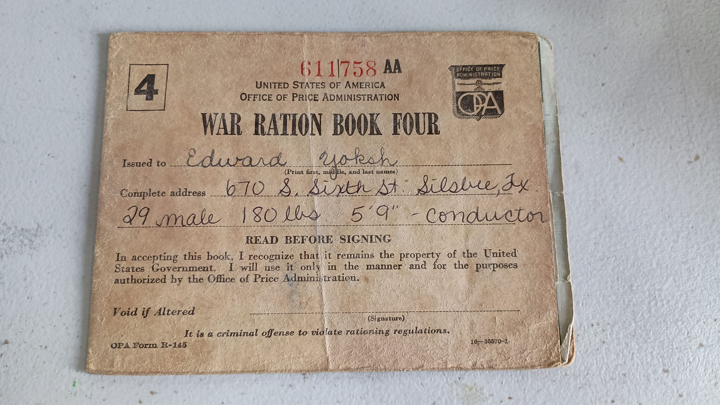 War Ration Book Four issued to Edward Yoksh- listed as conductor
