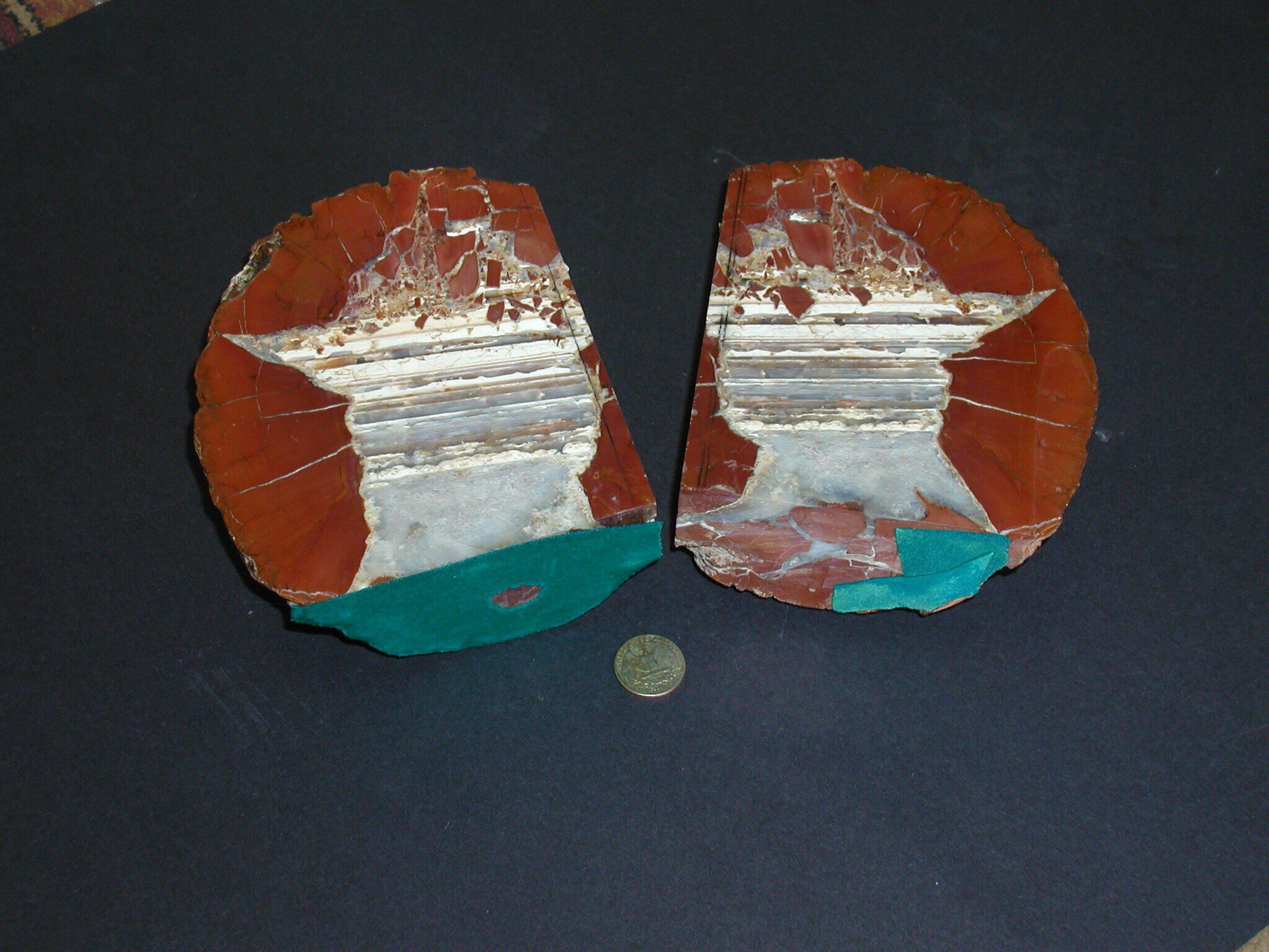 Geology, Geode Bookends Lamellar Banding, Quartz with Impurities, White & Light Grey, Red Rind, ConcoidalDimensions