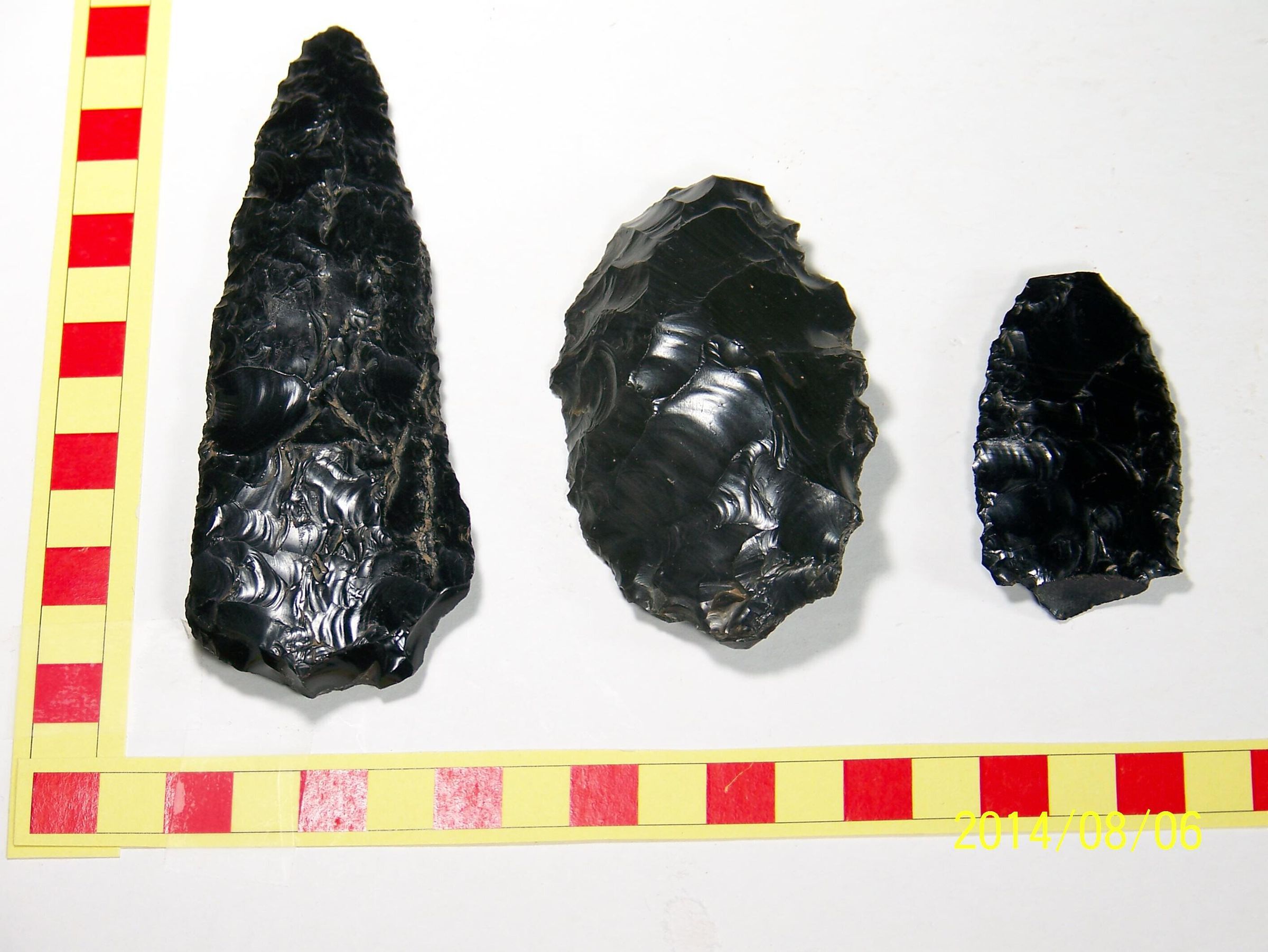 Obsidian, Largest is a projectile point, Med is a scraper, smallest is projectile pointCollection