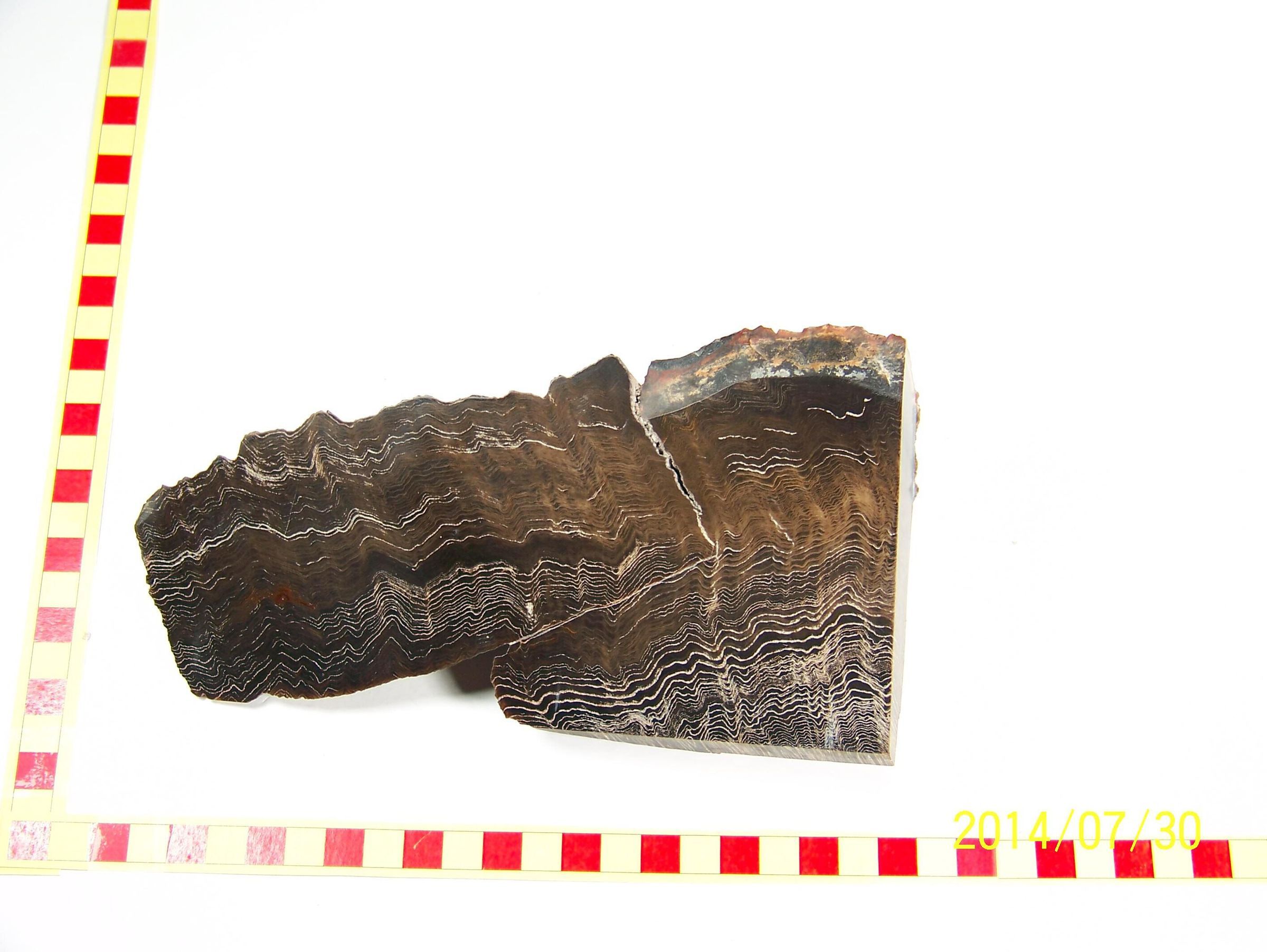 Dark petrified wood; bark present (not polished); bark removed (where polished)Collection