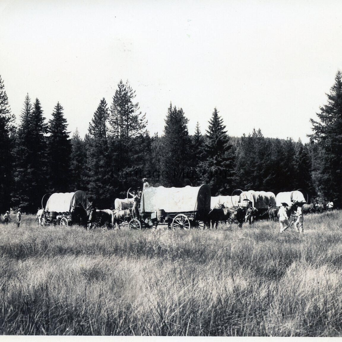Oregon Cavalcade Wagons Circled in Meadow Landscape