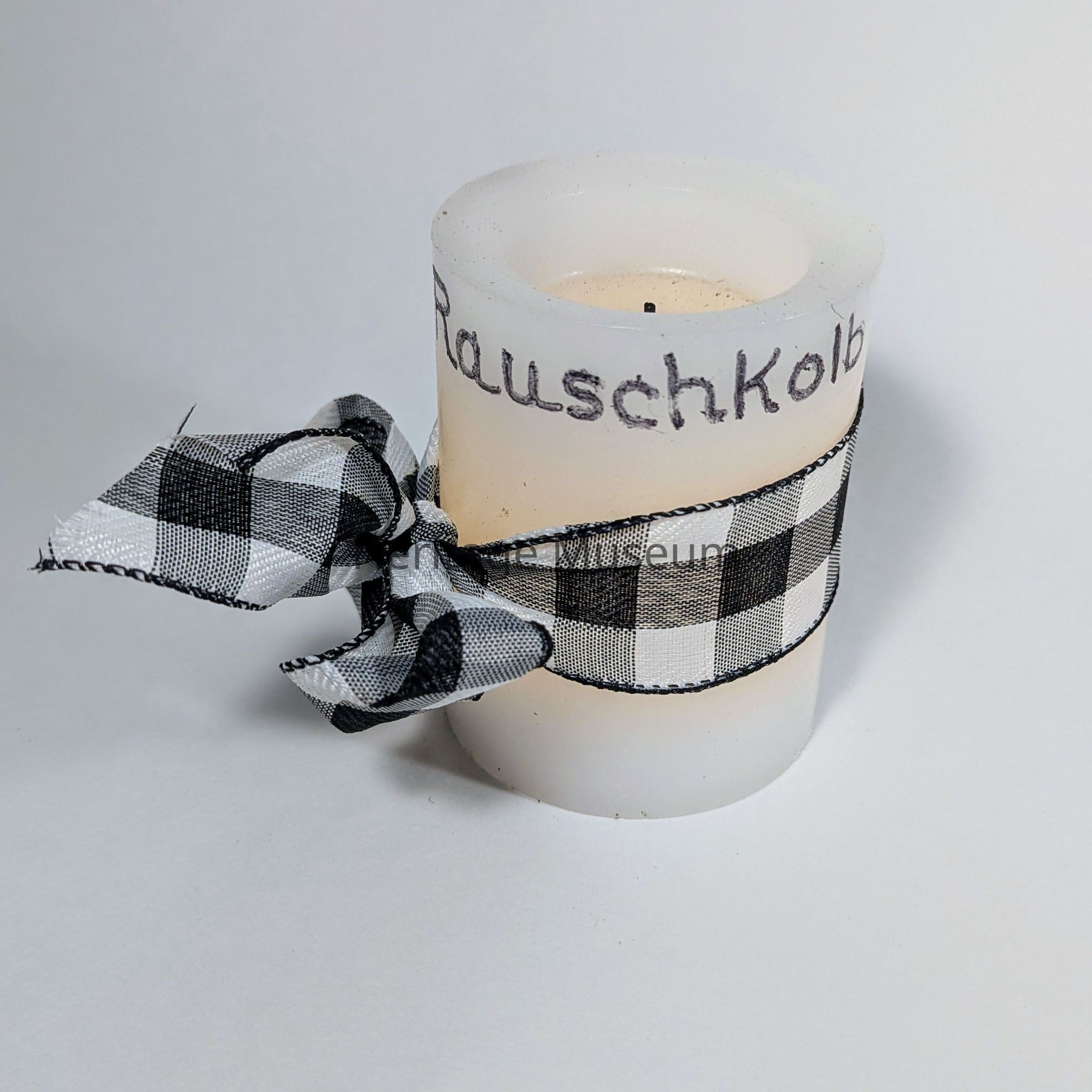 'Jan Rauschkolb' written on a flameless candle