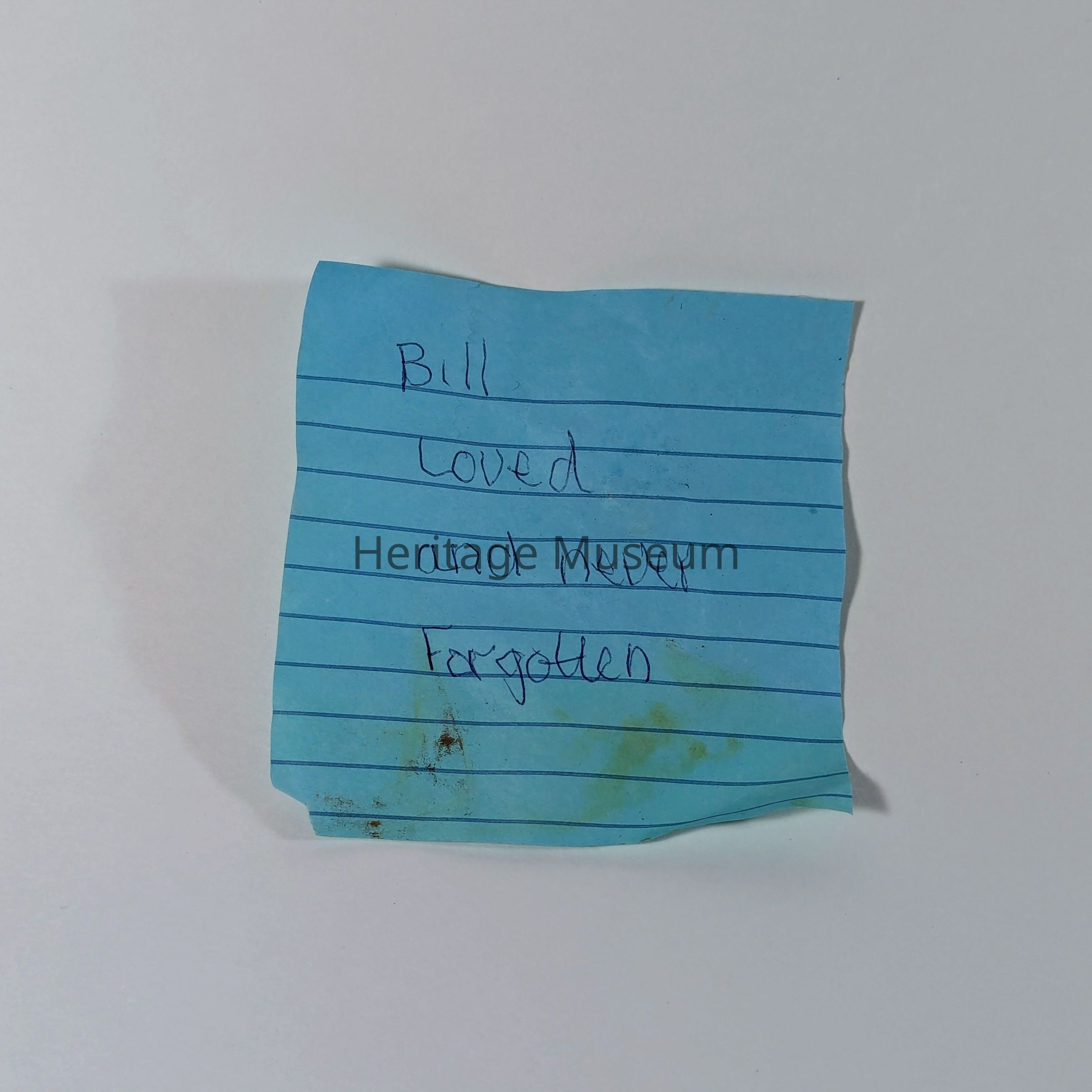 Handwritten Note – “Bill loved and never forgotten”