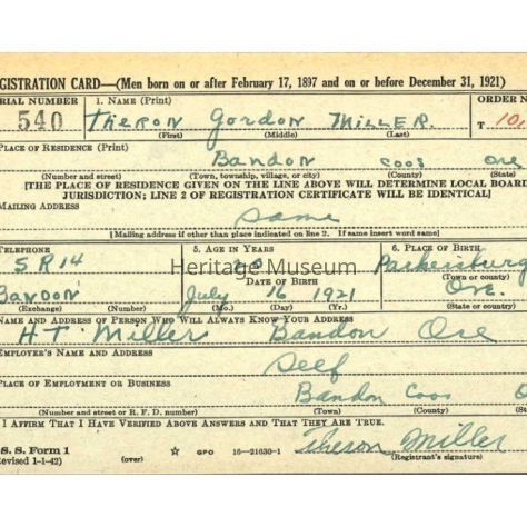 Branch: Air Force Rank: Private Status (POW/MIA/KIA): N/A General Notes: (Frank is the son of Theron and his wife Virginia G. Horton Miller)