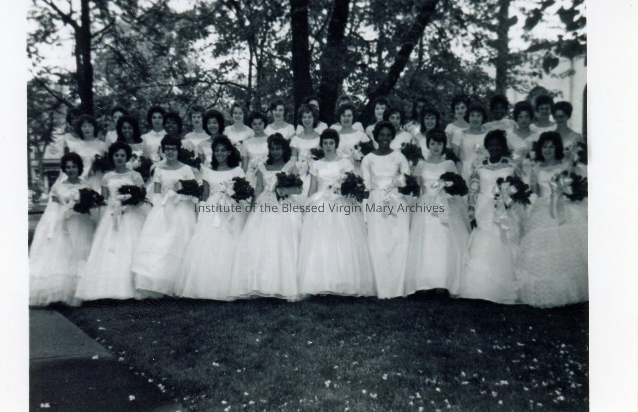 Loretto High School students from the graduating class of 1962. Located in the 6500 block of Stewart Avenue in Englewood, Chicago, this was the last graduating class prior to the school's closure.
