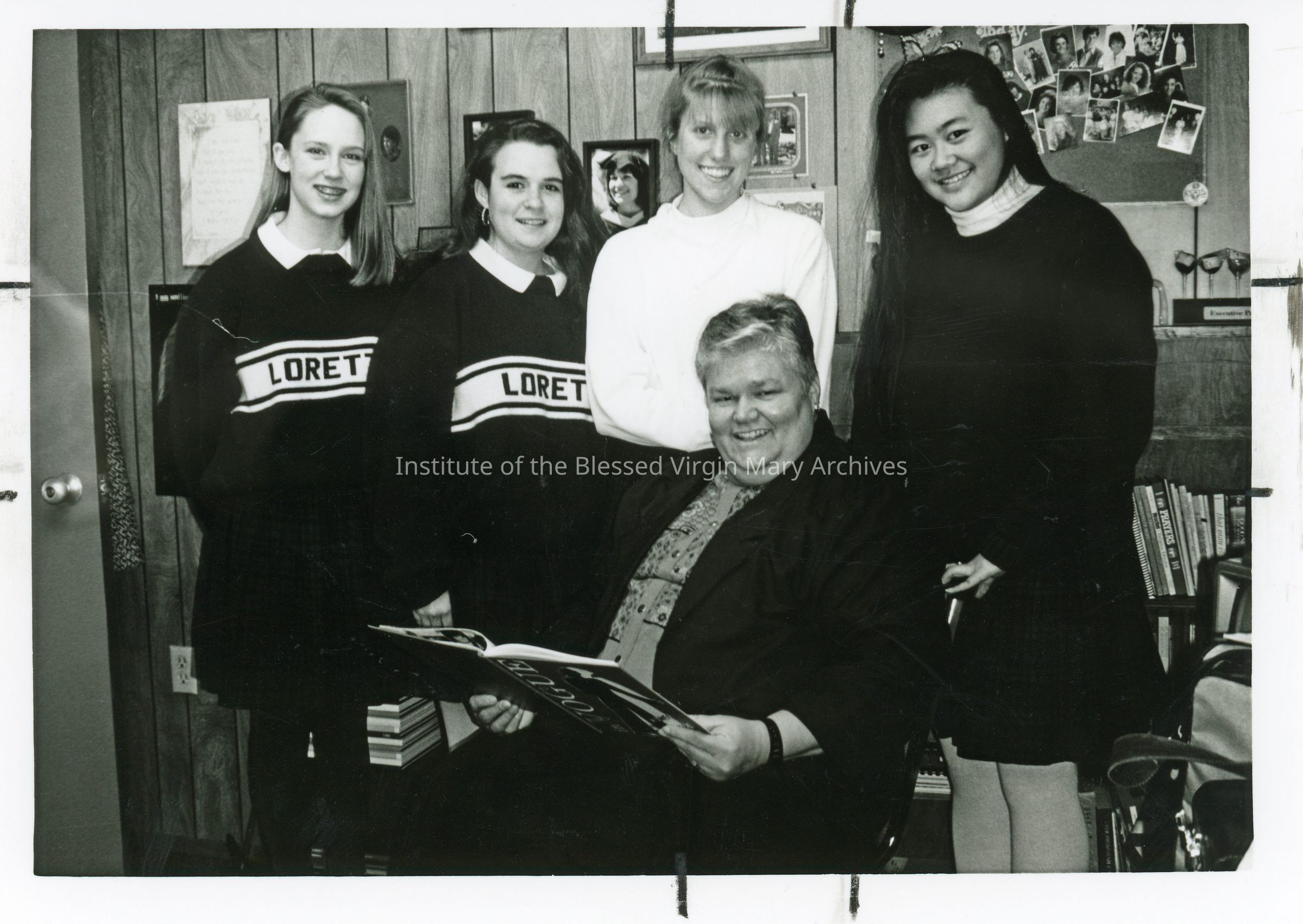 Loretto High School in Sacramento, California. Students are pictured with Sister Jean Frye.