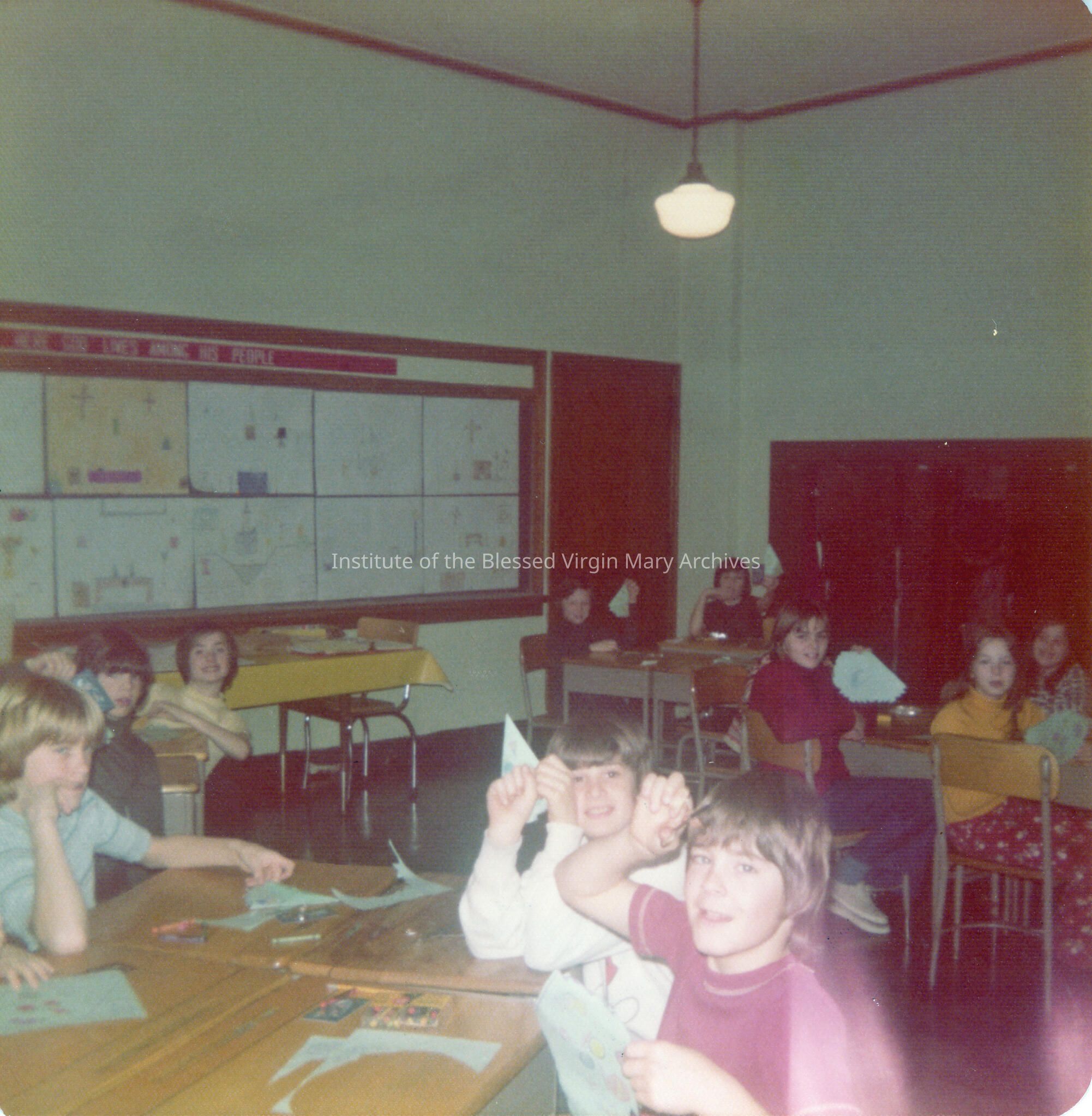 Religious education students in Sault Ste. Marie, Michigan. This image is believed to have been taken at St. Mary's Elementary School at 360 Maple Street.