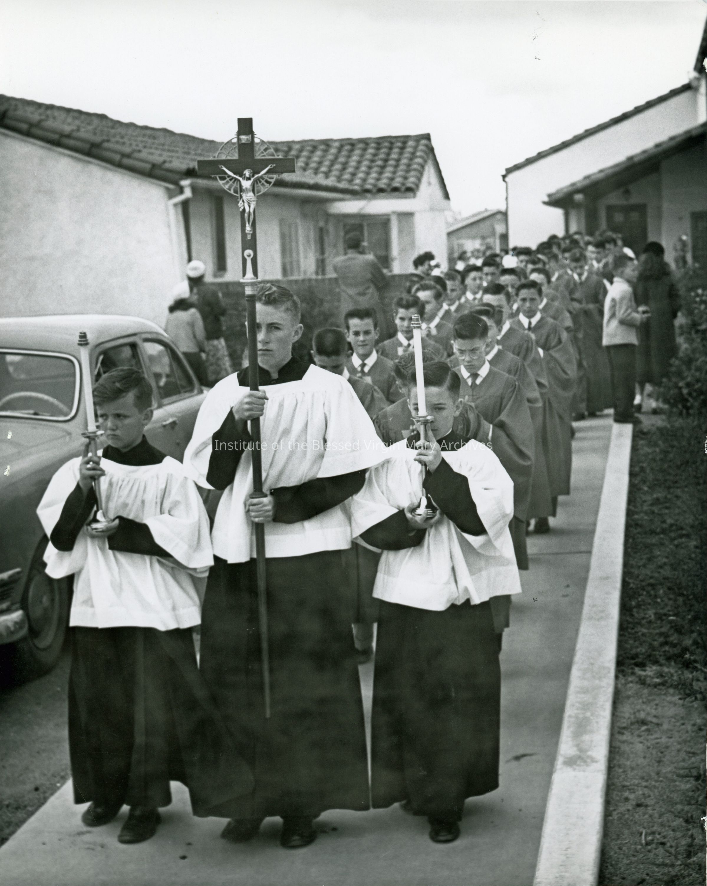 St. Philomene's School located at 2320 El Camino Avenue in Sacramento, California. This image features a student procession.