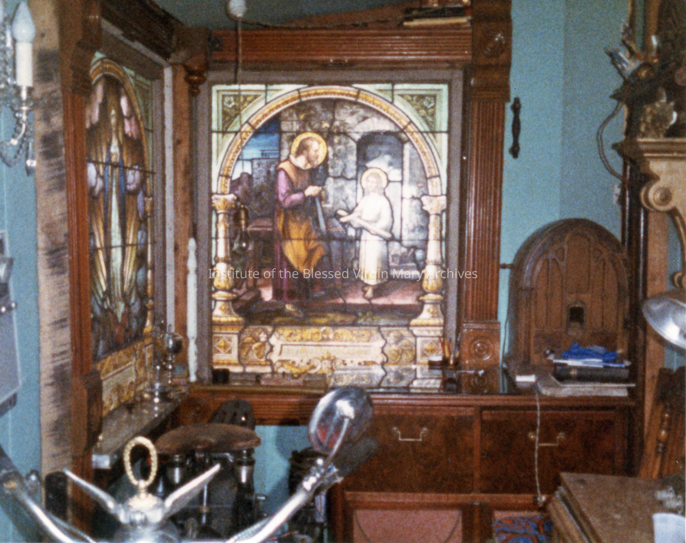 This image features a pair of stained glass windows taken from the former Loretto Convent at 377 Armory Place (Loretto Academy).