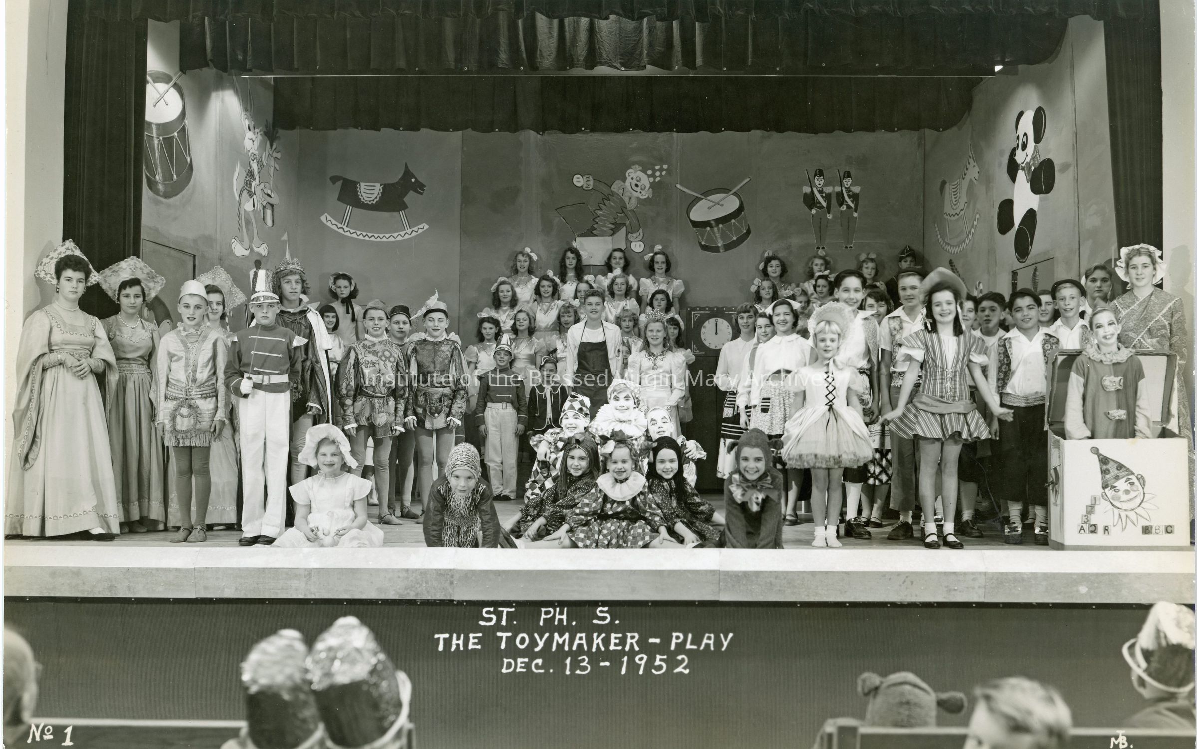 St. Philomene's School located at 2320 El Camino Avenue in Sacramento, California. This image features a student play titled "The Toymaker". The director is listed as Sister Agnes (Catalda) Labelle.