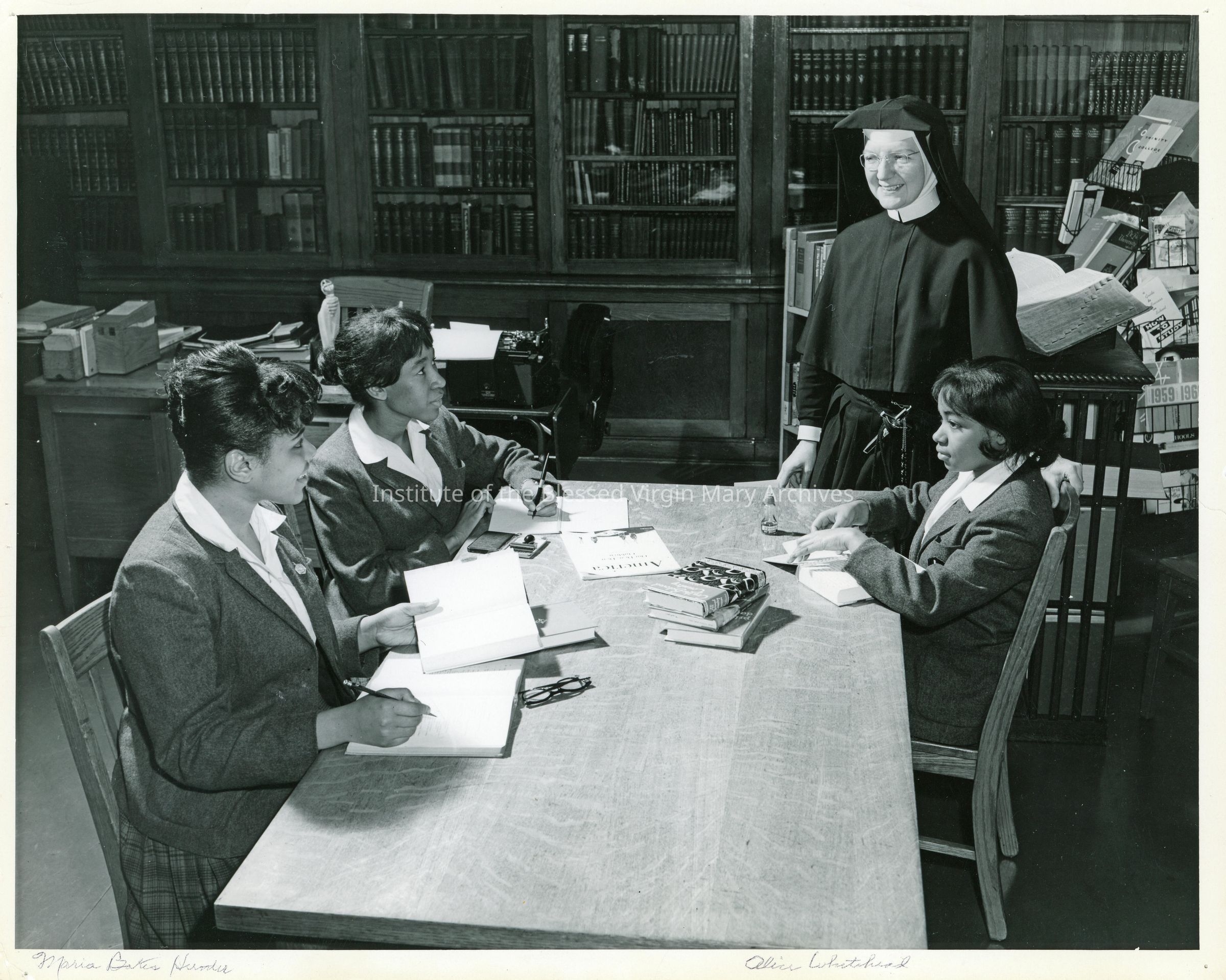 Sister Virginia (Alice) Whitehead with students at Loretto Academy Woodlawn. The girls were officers in the Library Club.