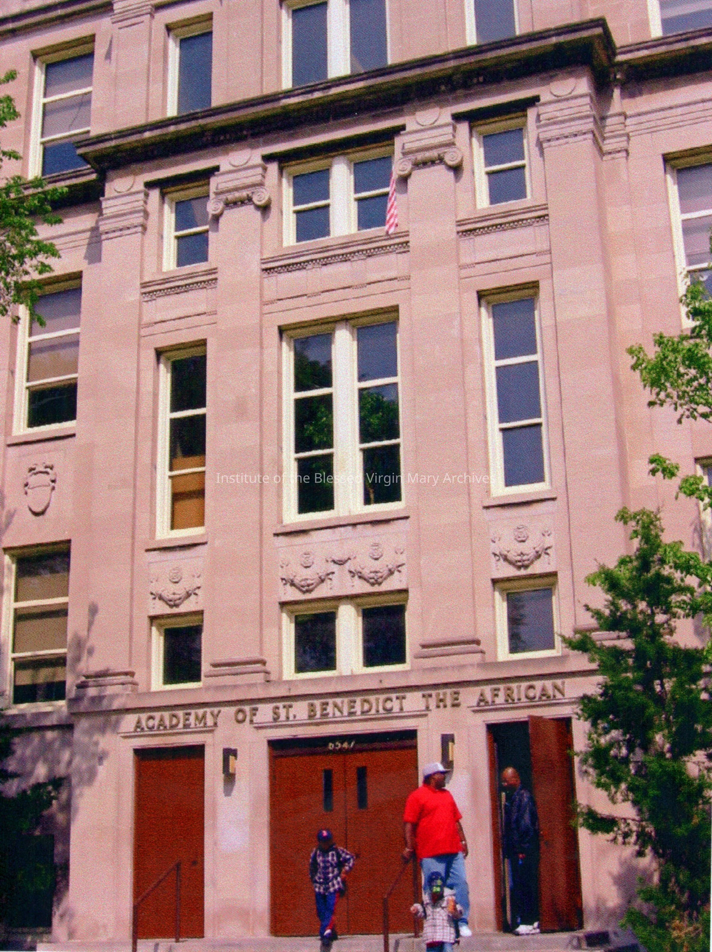 Academy of St. Benedict the African located at 6547 Stewart Avenue in Englewood, Chicago. Formerly, this building housed the St. Bernard Grammar School.