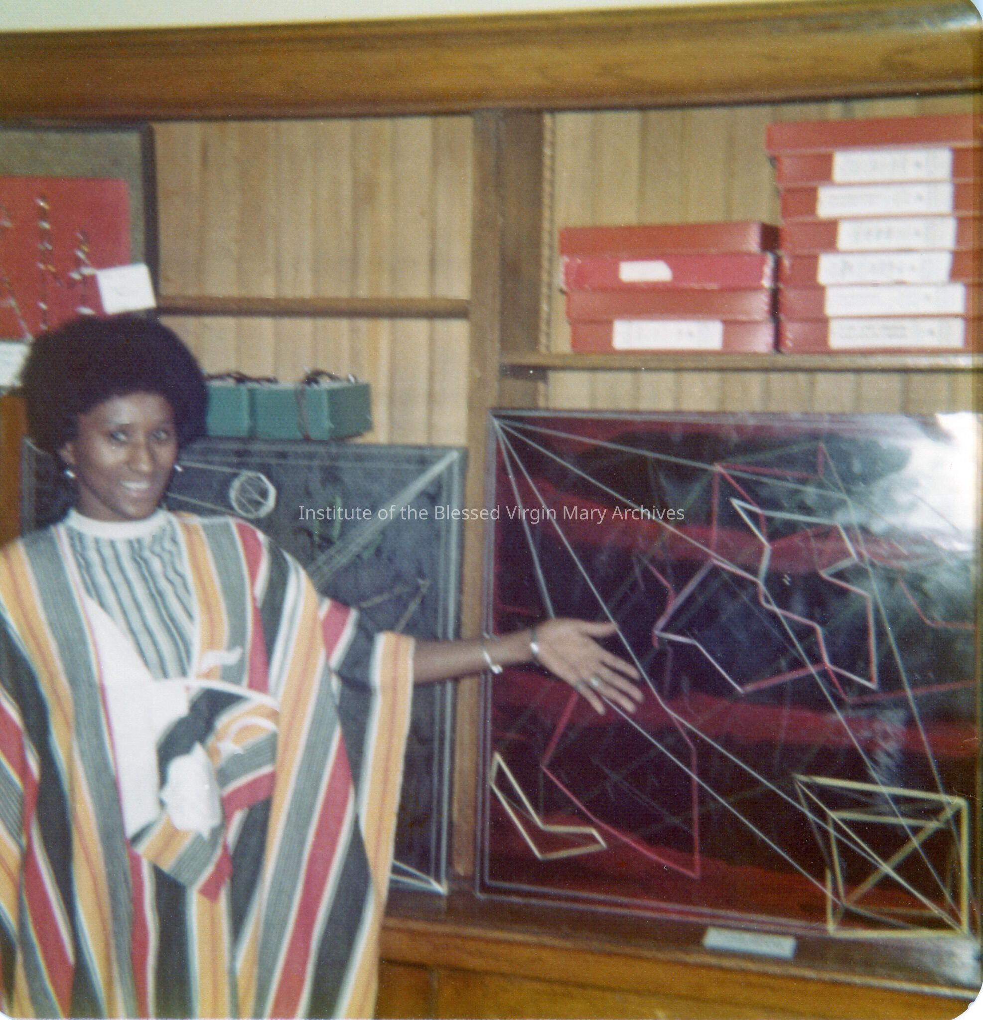 Student attending African Heritage Day. This event may have been sponsored by the Loretto Adult Education Center. Founded in 1964, the LAEC program worked to improve literacy, provide job training and award high school diplomas to low income adults and young adults.