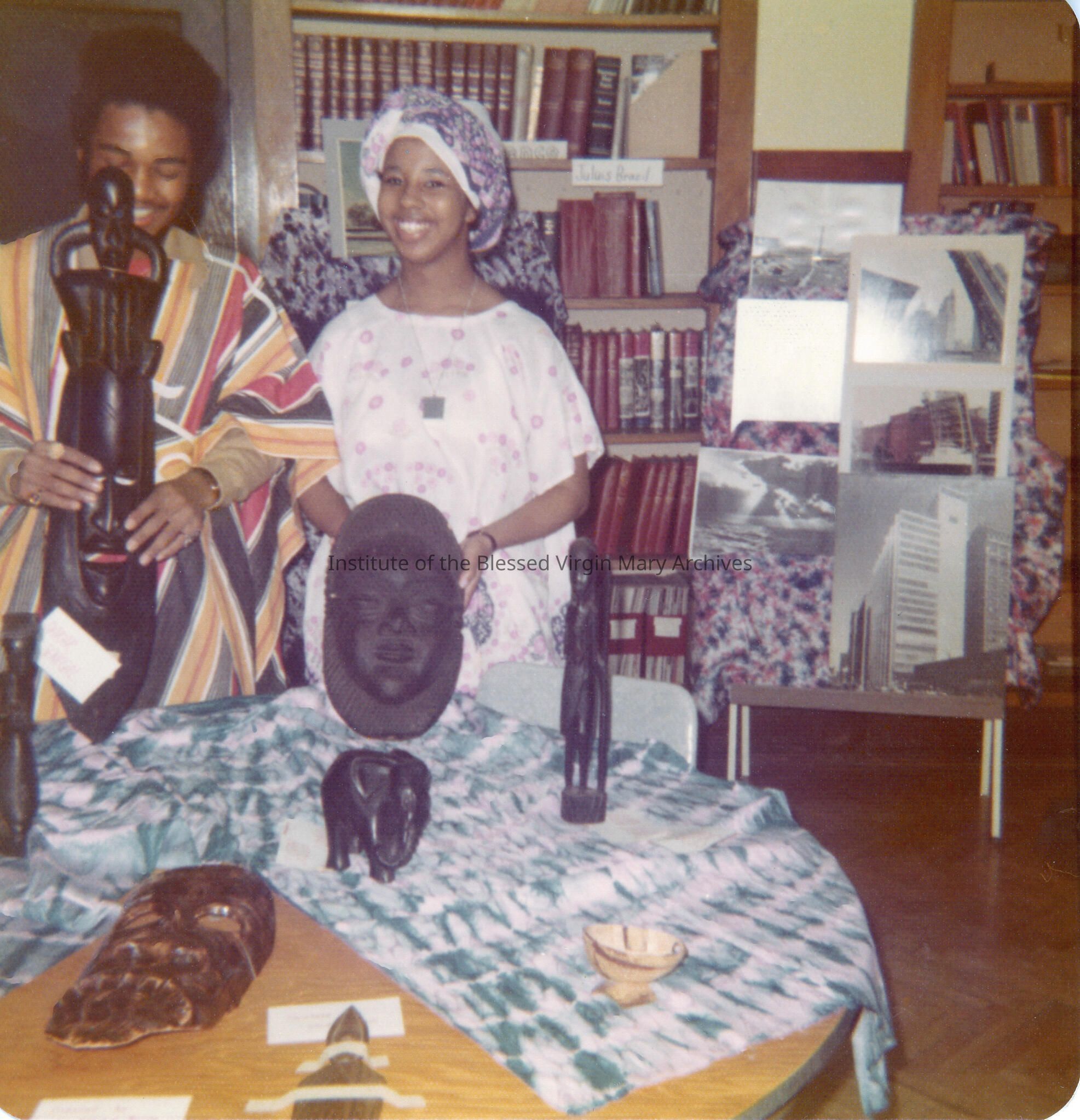 Students attending African Heritage Day. This event may have been sponsored by the Loretto Adult Education Center. Founded in 1964, the LAEC program worked to improve literacy, provide job training and award high school diplomas to low income adults and young adults.