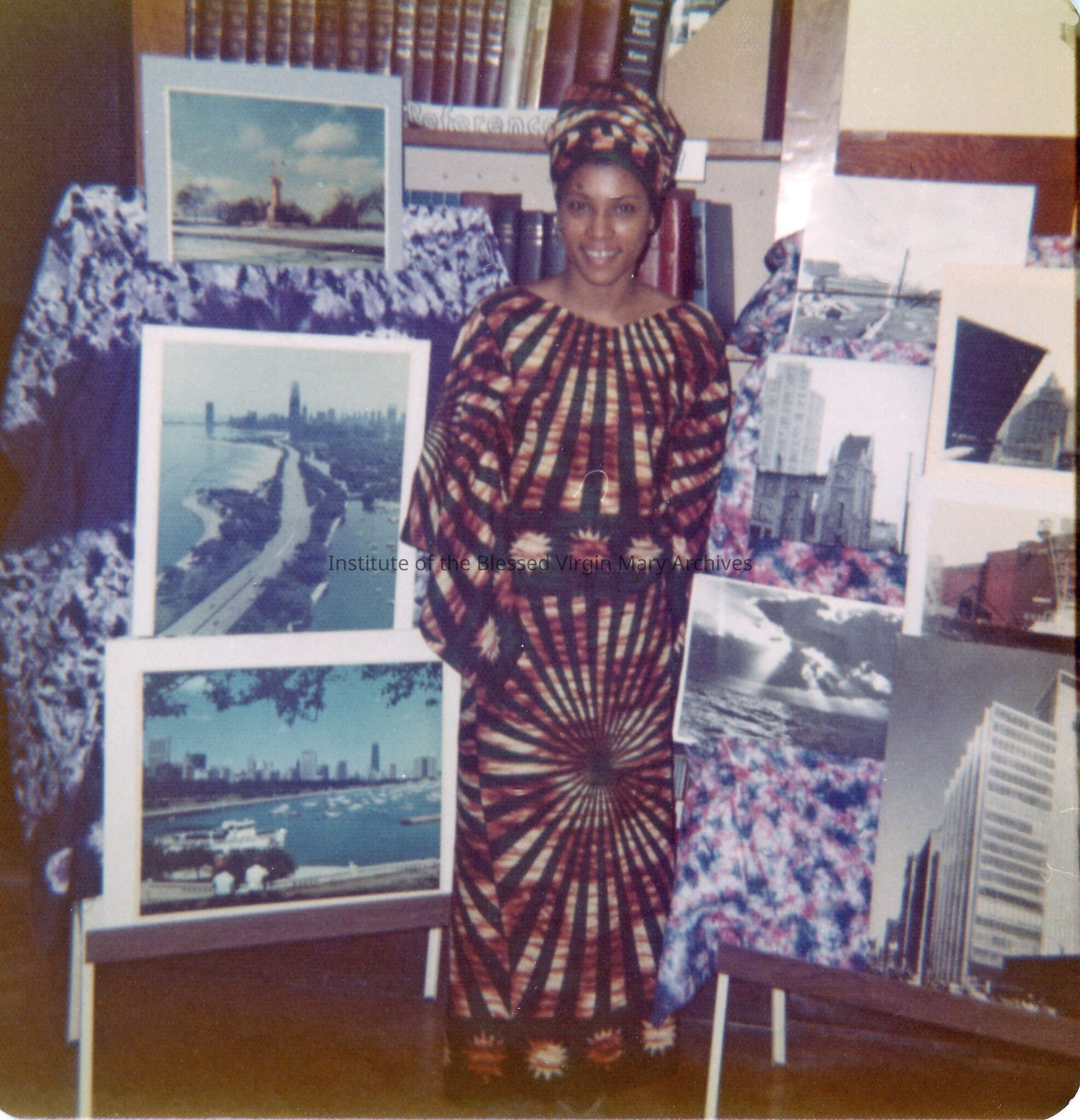 Student attending African Heritage Day. This event may have been sponsored by the Loretto Adult Education Center. Founded in 1964, the LAEC program worked to improve literacy, provide job training and award high school diplomas to low income adults and young adults.
