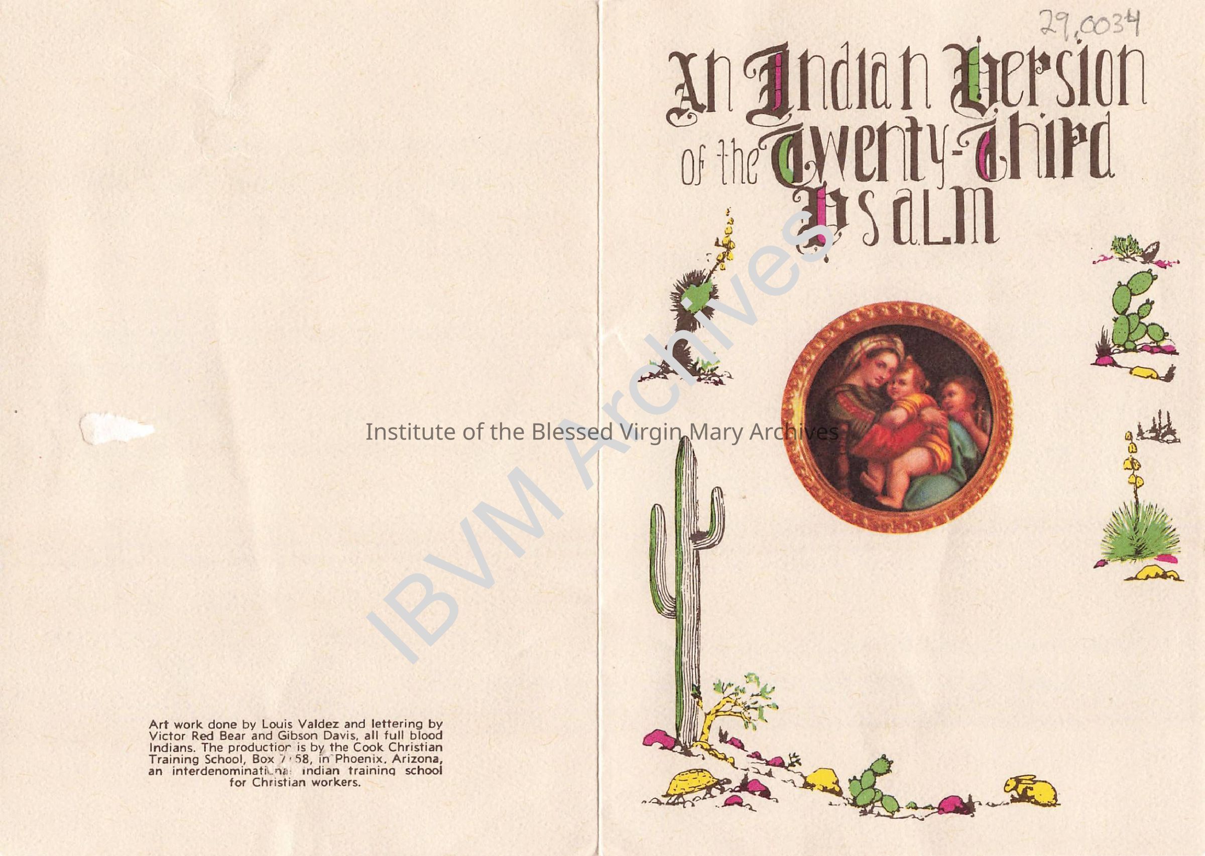 Please contact the IBVM Archives for all inquiries or requests (archives@ibvm.us).