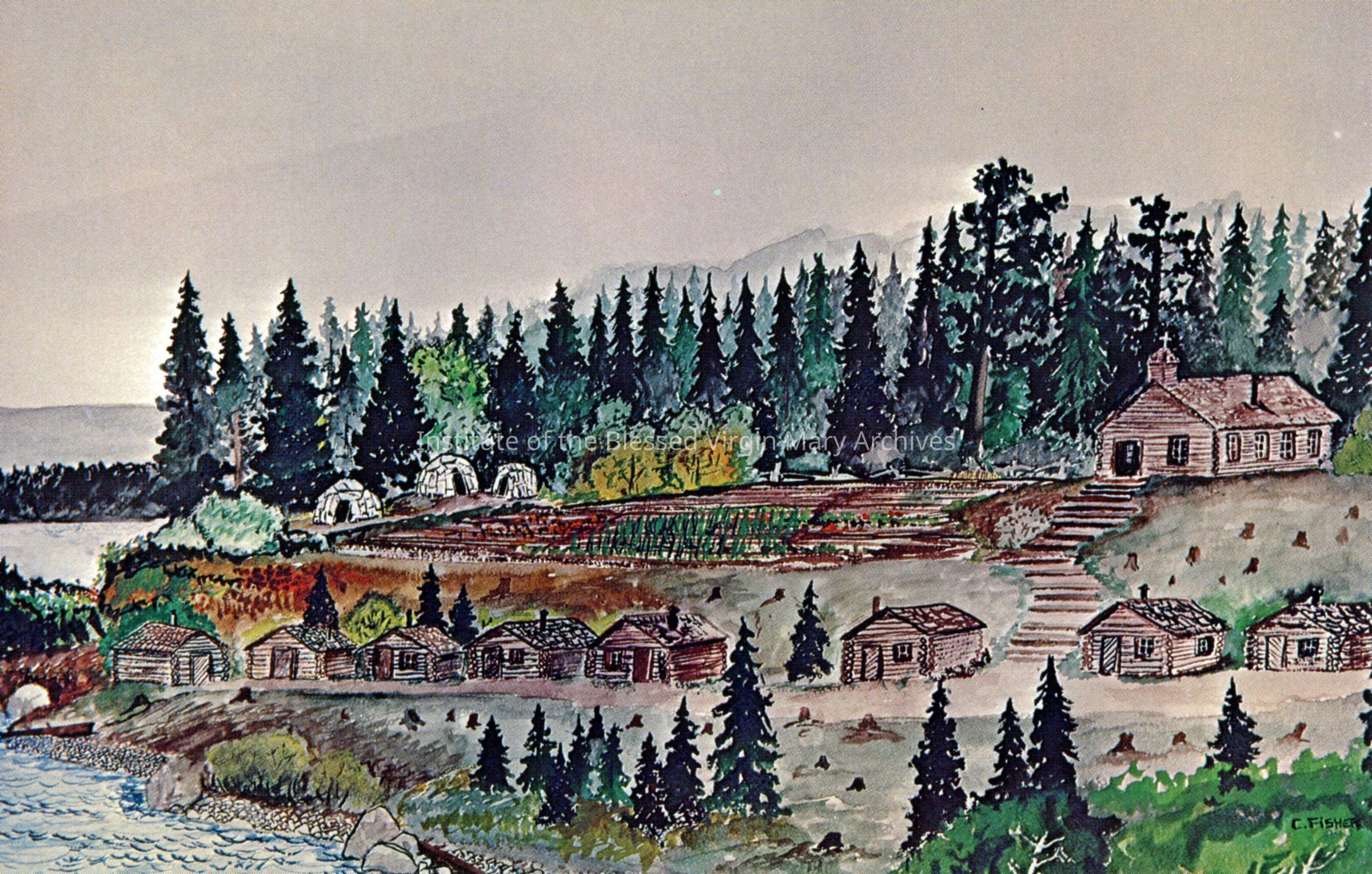 Postcard of the L'Anse mission established by Bishop Fredric Baraga in 1843. Located in present day Assinins, Michigan, this area is now part of the L'Anse Reservation.