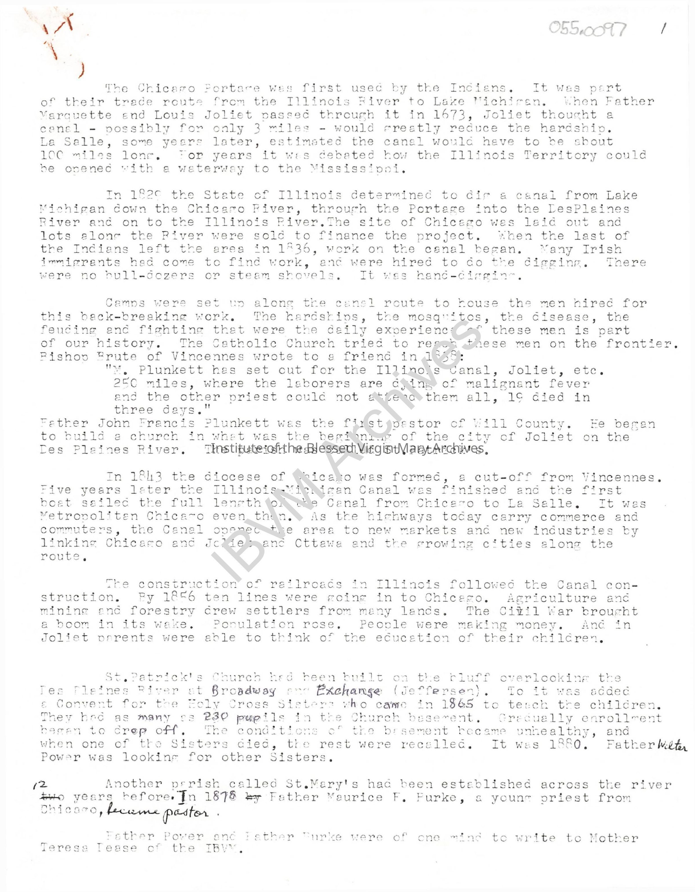 Brief history of the IBVM in the United States written by Sister Miriam (Mary Clare) Mracek. It discusses many topics including the early history of Illinois, transportation, Mother Teresa Dease, the arrival of the IBVM Sisters in Joliet, St. Patrick's, St. Mary's Academy, St. Bernard's and more. Several communities are also mentioned such as Englewood, Woodlawn, Northlake, Detroit, Carmichael, Western Springs, Carol Stream and Oak Lawn.Context