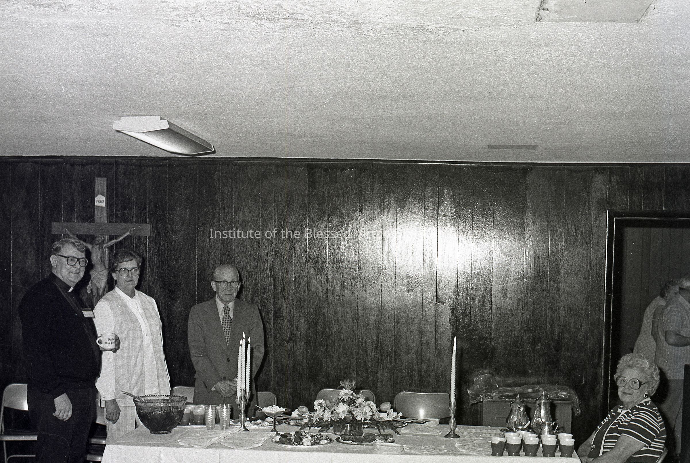 Gathering at Jim Altiery's Restaurant located at 306 Republic Avenue in Joliet, Illinois. The attendees are not identified. Held on April 20th, 1980, this event commemorated the one hundredth anniversary of the IBVM in the United States.
