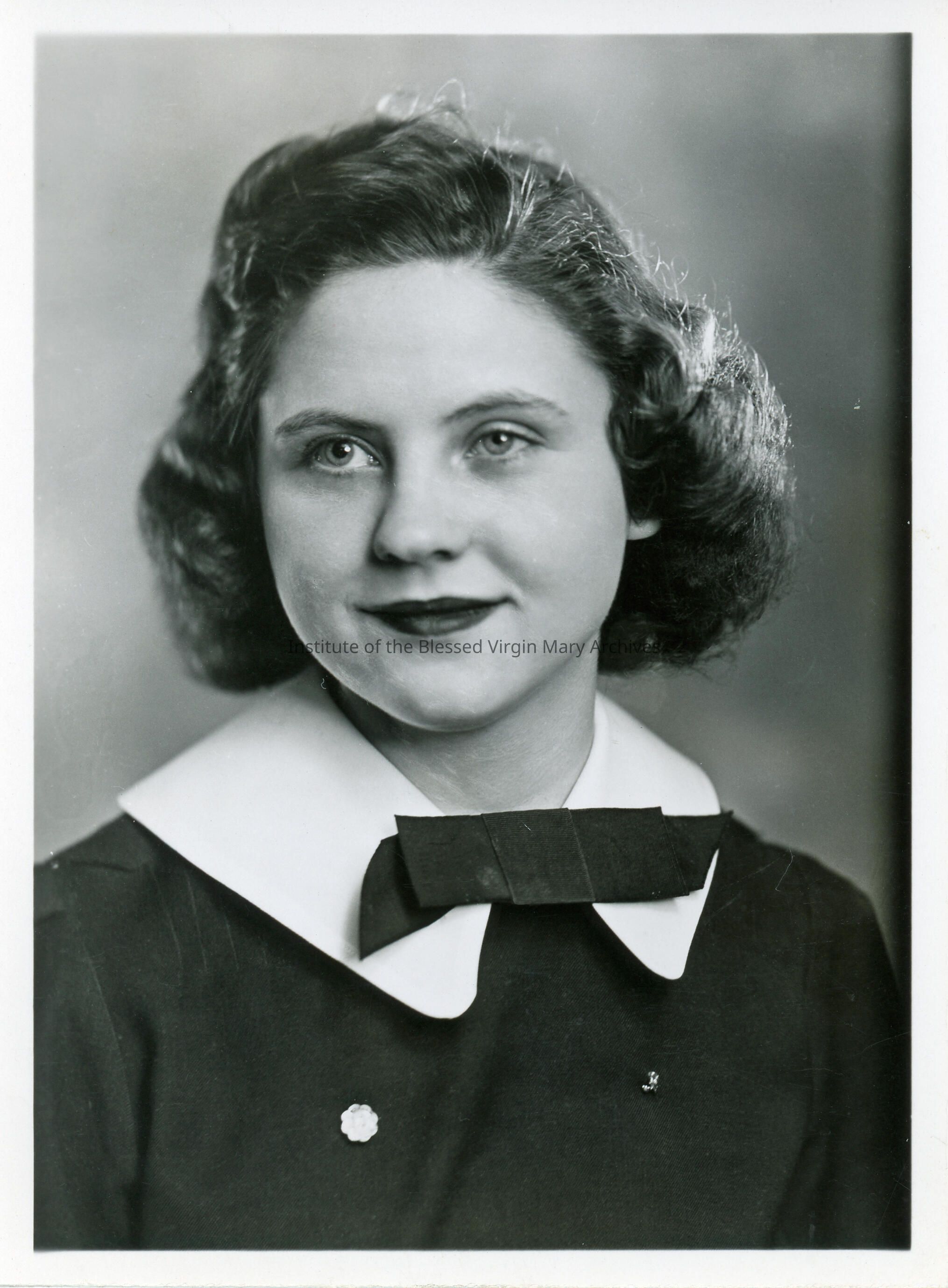 Portrait of Dorothy Zutchik, a 1946 graduate of Loretto High School, formerly Loretto Academy, in Sault Ste. Marie. Founded in 1896, the academy's location at 377 Armory Place opened in 1899 and underwent a substantial addition in 1910. Converted into a co-ed high school in 1944, it was demolished in 1966 after Loretto Catholic Central High School was constructed.