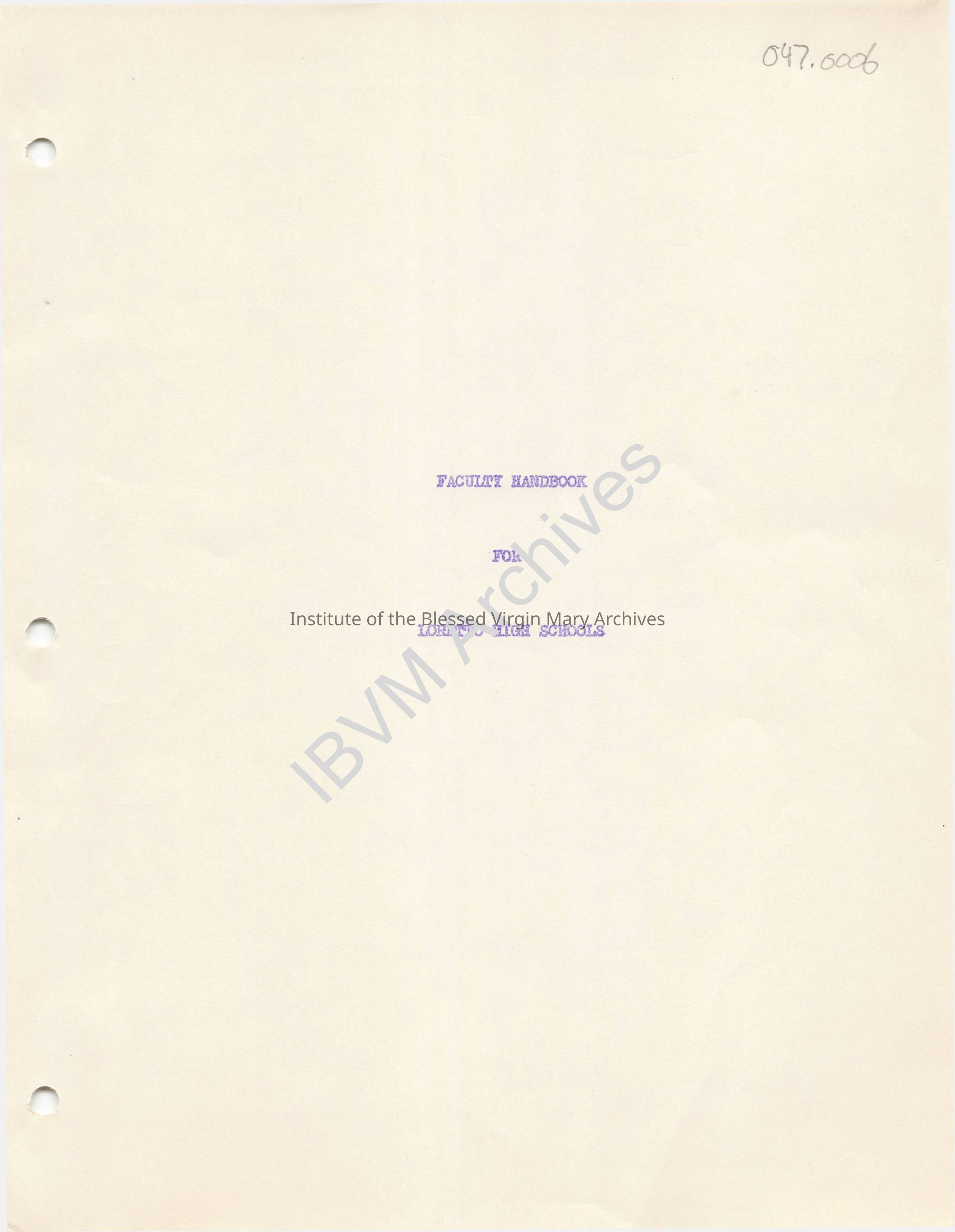 Faculty handbook for Loretto High Schools. Topics include the philosophy of education, Mary Ward, curriculum, personnel, policies, discipline, guidance and more.