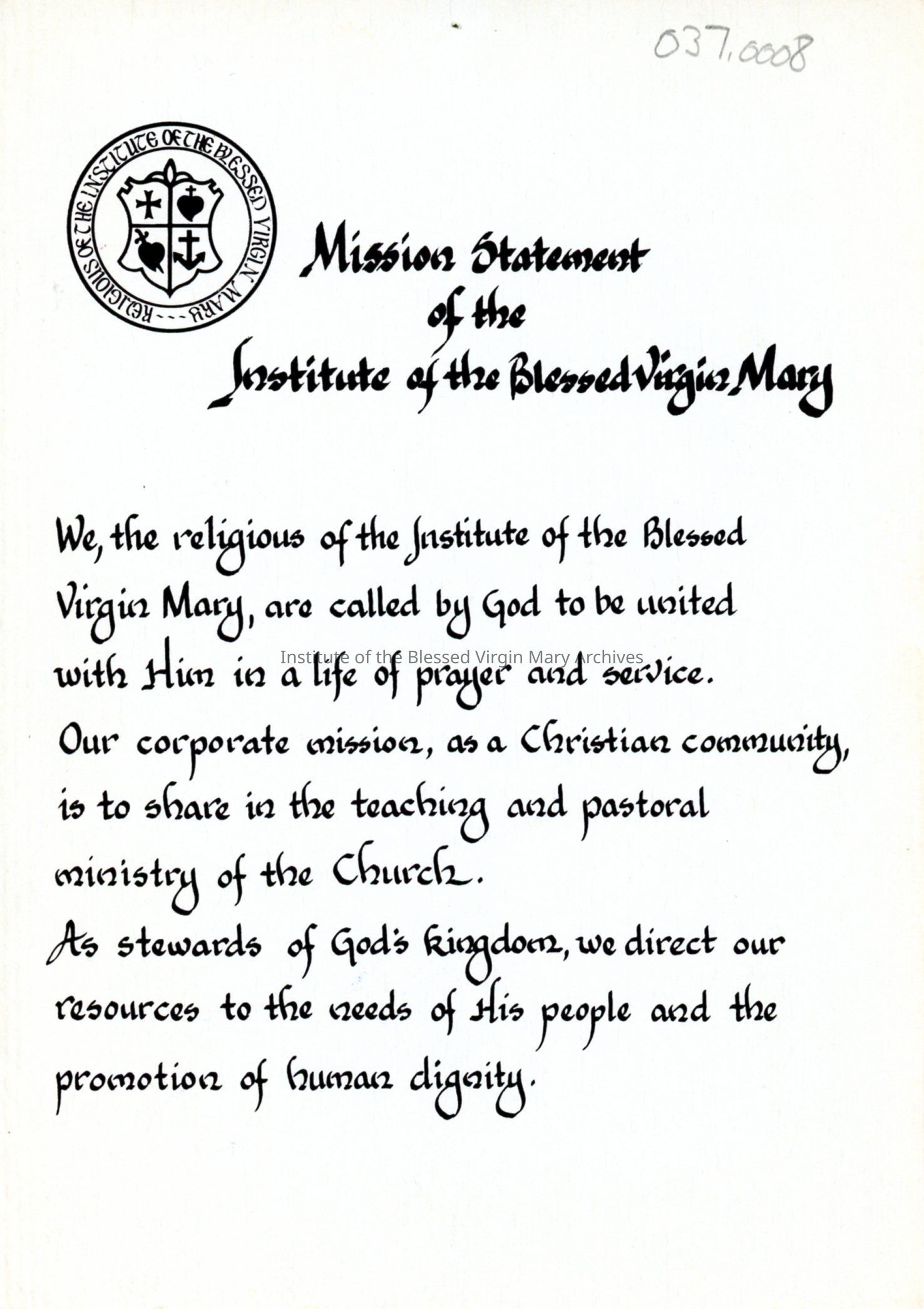 Mission statement for the Institute of the Blessed Virgin Mary.Context