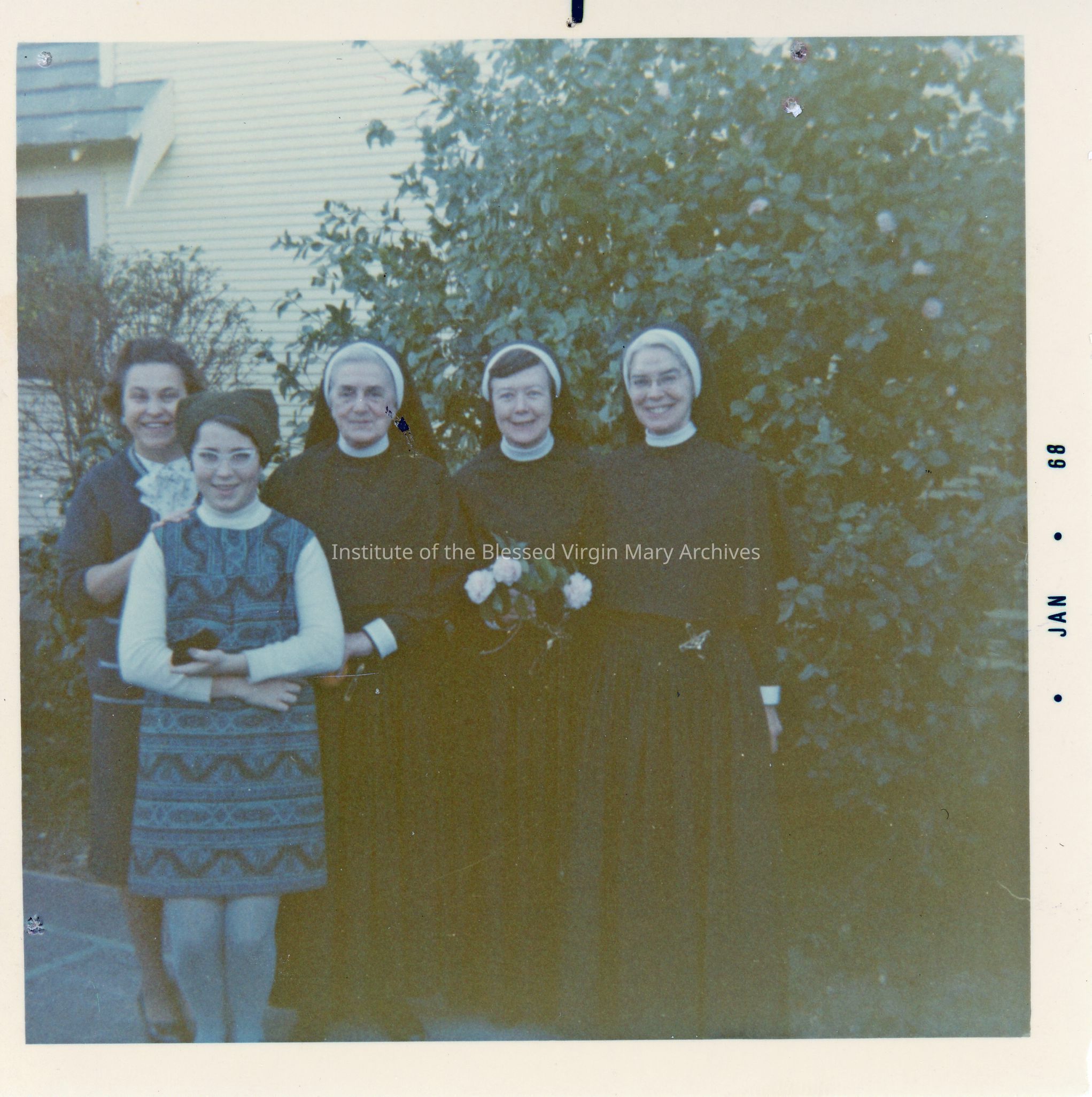 IBVM Sisters in California. This image features Sister Marjorie (Edwarda) Allen, second from the right, and Sister Florence (St. Camillus) Hayes, far right.Context