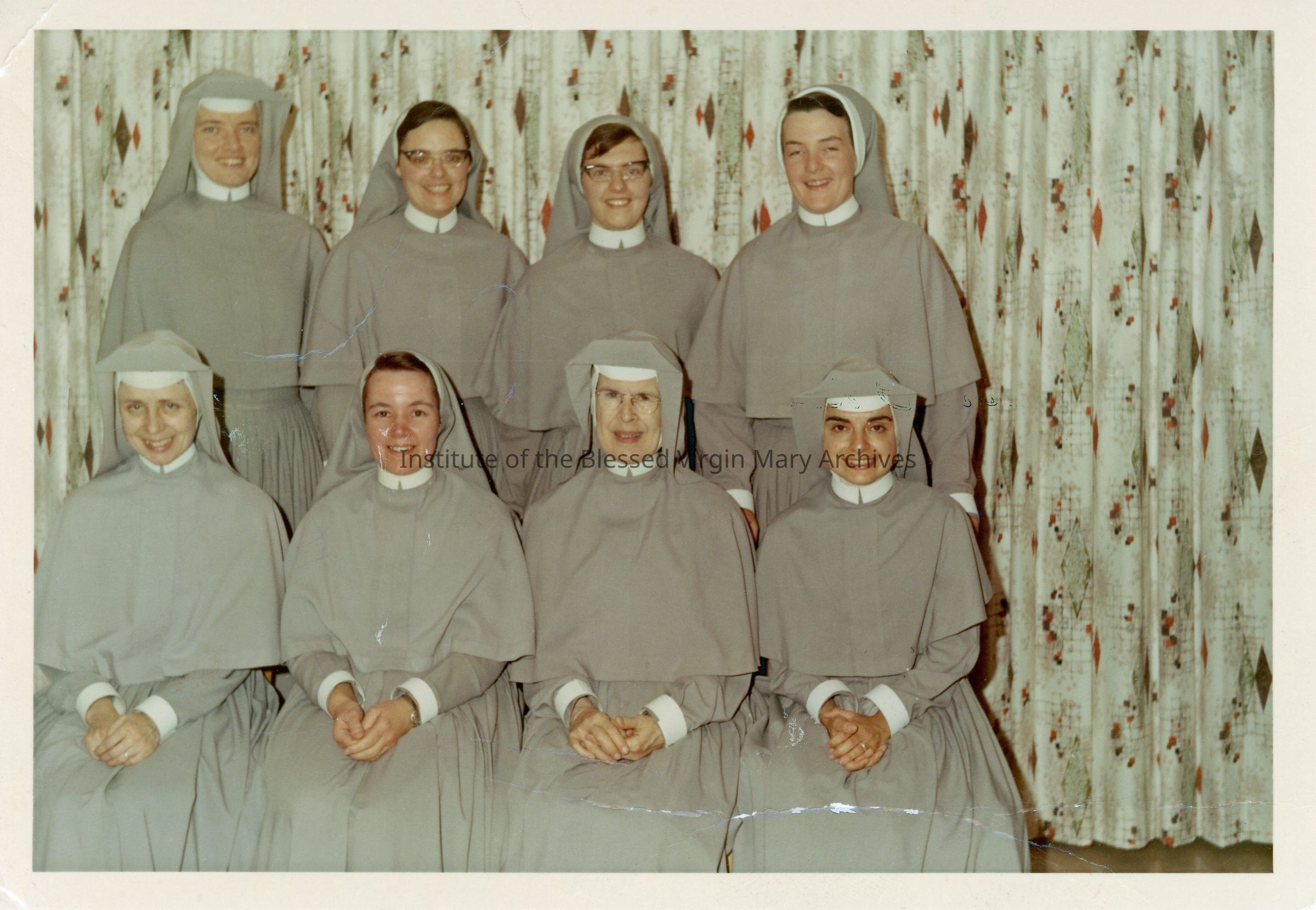 IBVM Sisters in California. In the top row, from left to right, are Sister Margaret (Bellarmine) O'Mara, Sister Joan (Mary Cyrene) Emmett, Sister Kristina (Miguel) Spejcher and Sister Maureen (James Ellen) Ryan. In the bottom row, from left to right, are Sister Catherine (Celine) Oliva, Sister Dolores Ann (Evelyn) McCloskey, Sister Beatrice (Justina) Malone and Sister Mary Lou (St. Anthony) Poerio. The women were part of the community at Our Lady of the Assumption in Carmichael.