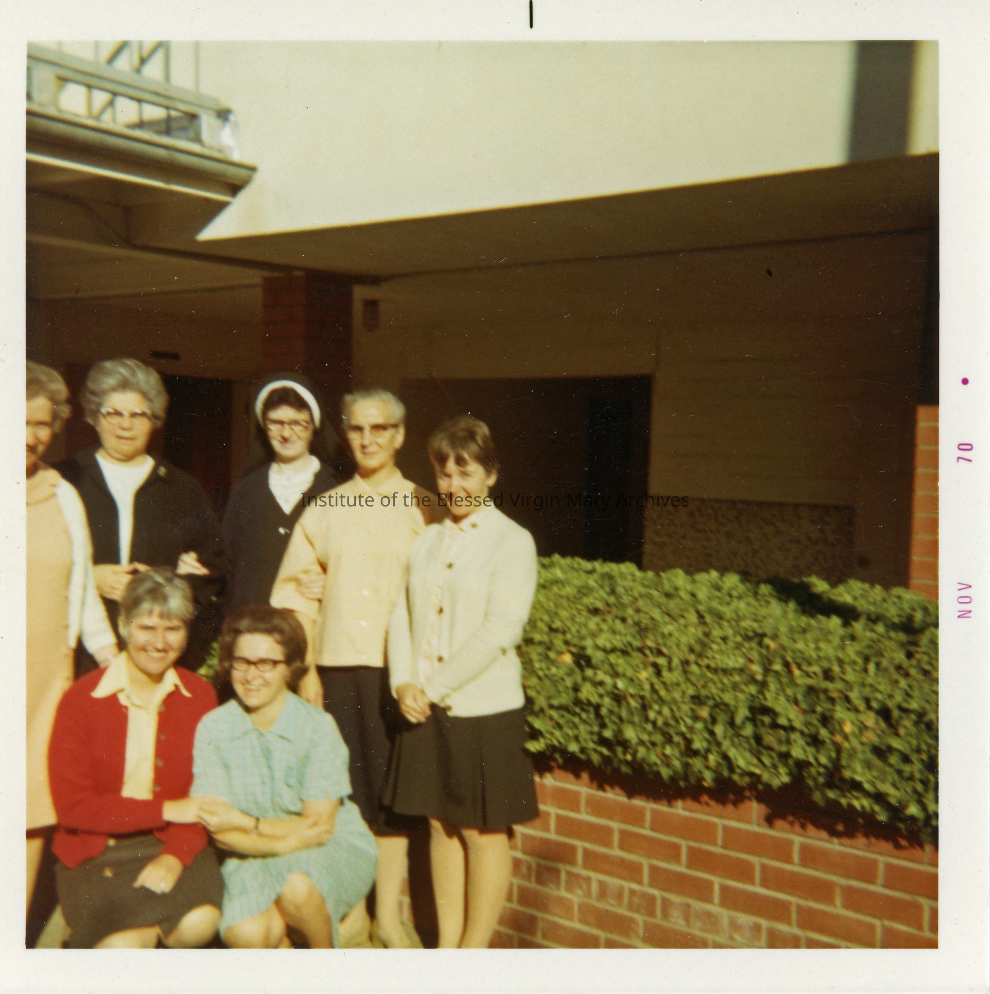 IBVM Sisters from the community at St. Philomene's in Sacramento, California. In the back row, from left to right, are Sister Josephine (Jude) O'Brien, Sister Marion (de Chantal) Willis, Sister Mildred Weinberger, Sister Veronka Marton and Sister Dolores Ann (Evelyn) McCloskey. Kneeling, from left to right, are Sister Mary Howard Moriarty and Sister Dorothy (Wilhelmine) Fromm.