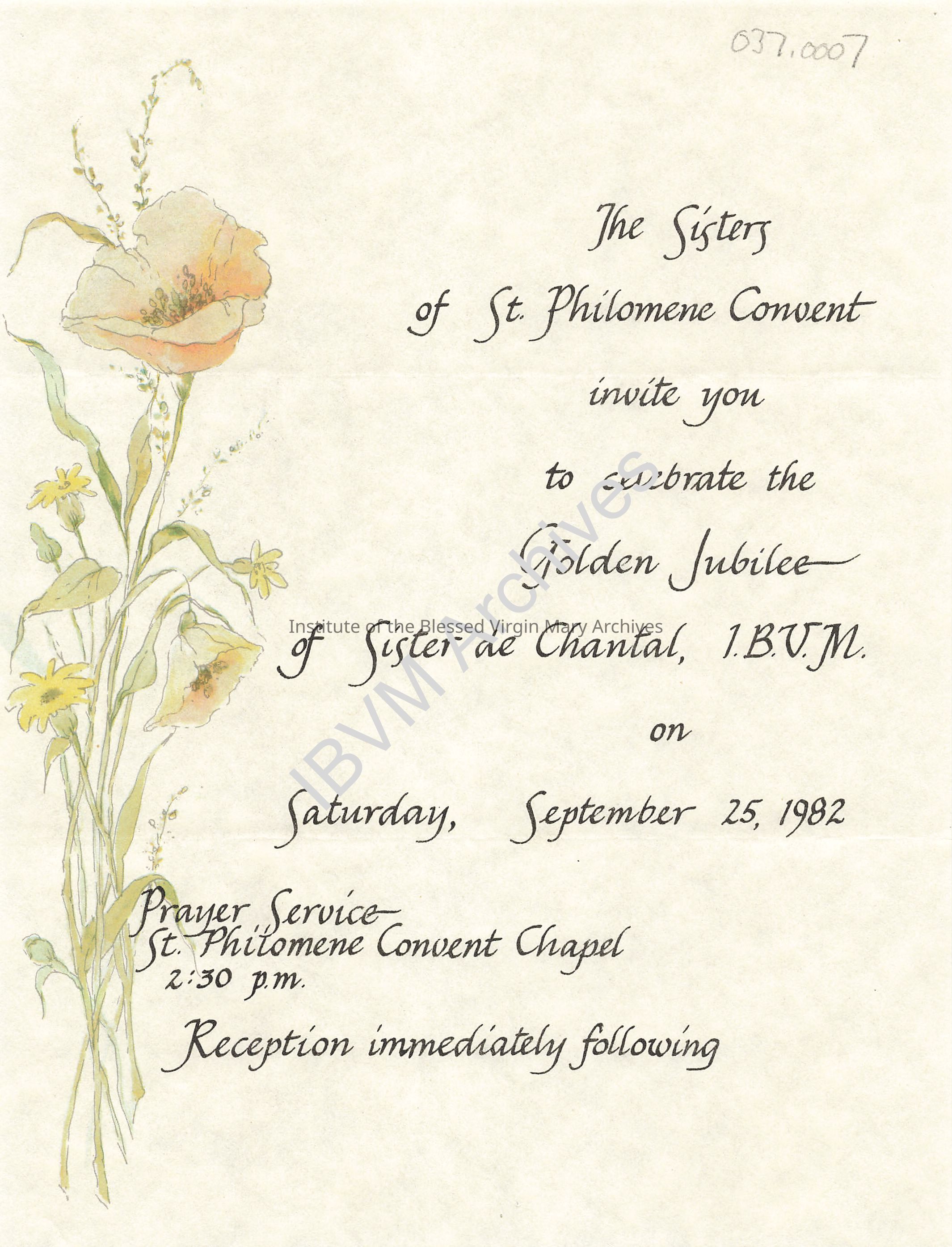 Invitation to the Golden Jubilee for Sister de ChantalEntry/Object ID
