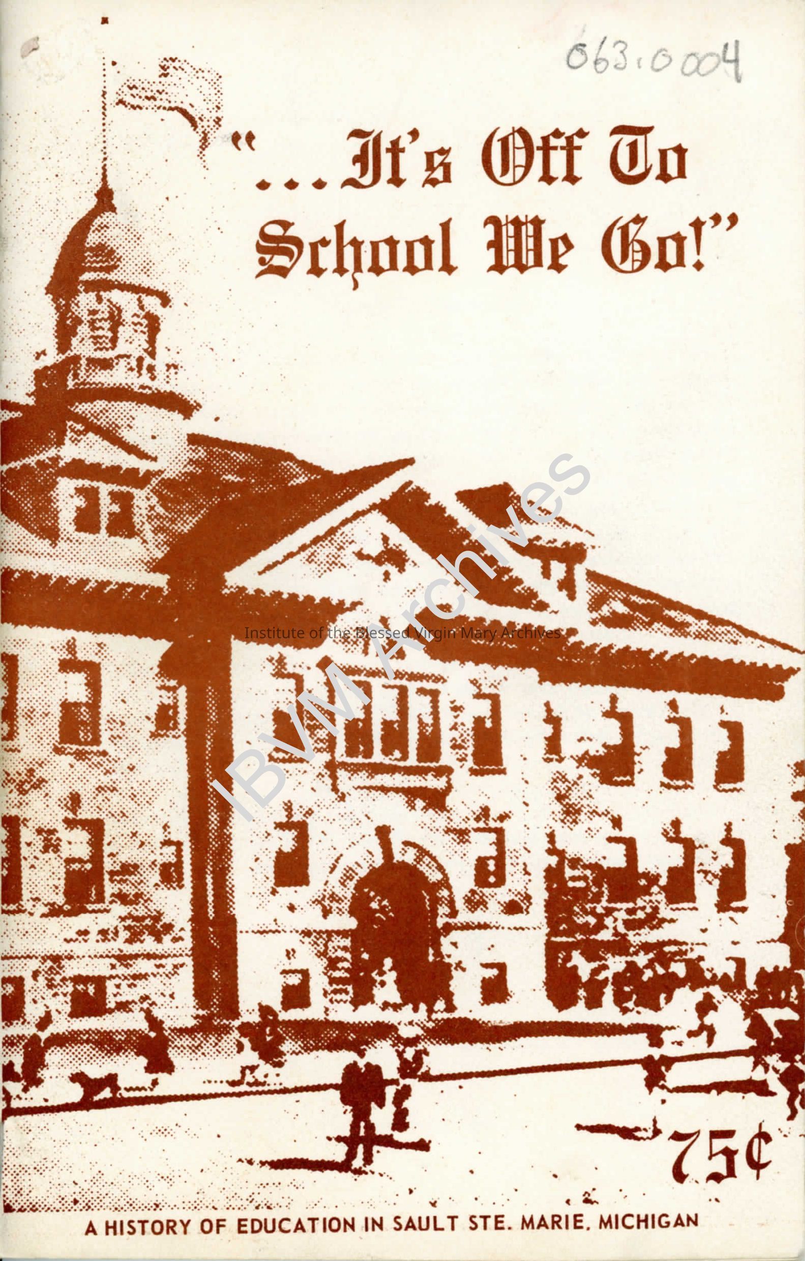 Booklet detailing the history of education in Sault Ste. Marie, Michigan. Loretto Academy, Loretto Catholic Central High School and St. Mary's Elementary School are discussed with enrollment statistics provided.