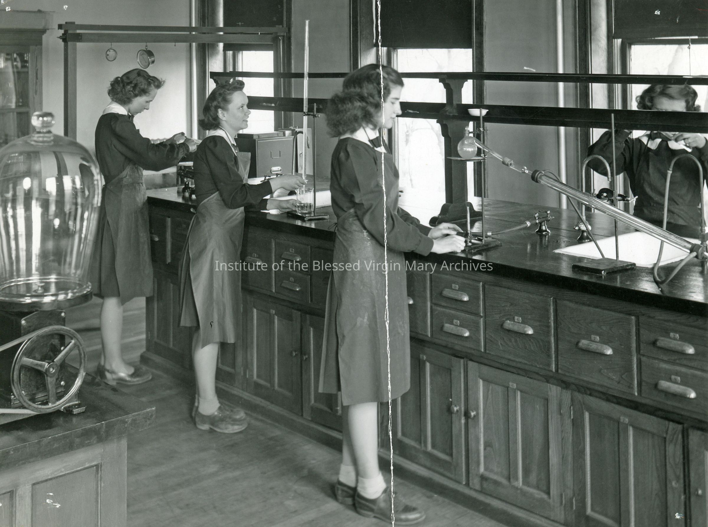 Chemistry lab at Loretto Academy/Loretto High School in Sault Ste. Marie, Michigan. Founded in 1896, the academy's location at 377 Armory Place (pictured) opened in 1899 and underwent a substantial addition in 1910. Converted into a co-ed high school in 1944, it was demolished in 1966 after Loretto Catholic Central High School was constructed.