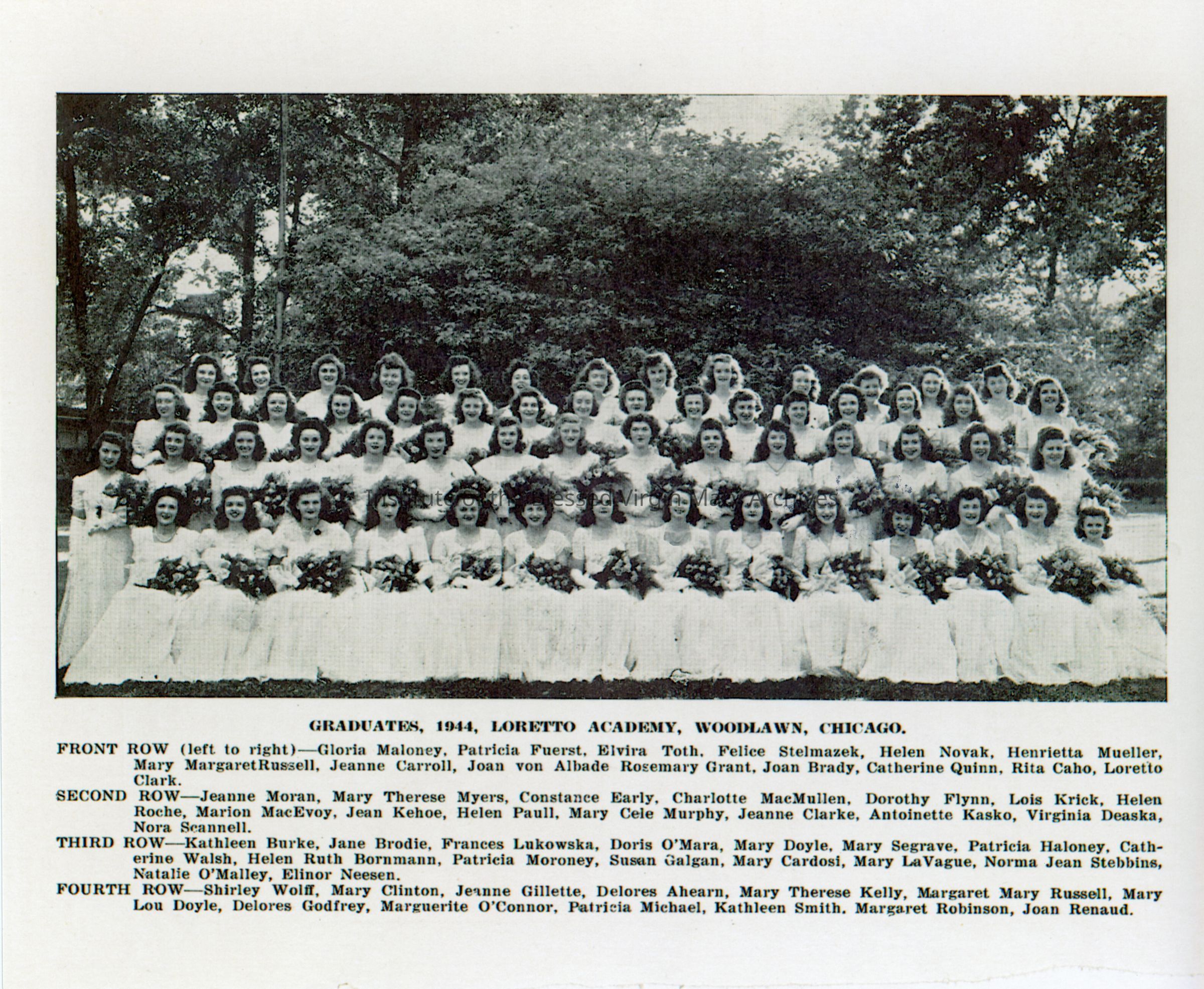 The 1944 graduating class of Loretto Academy Woodlawn.