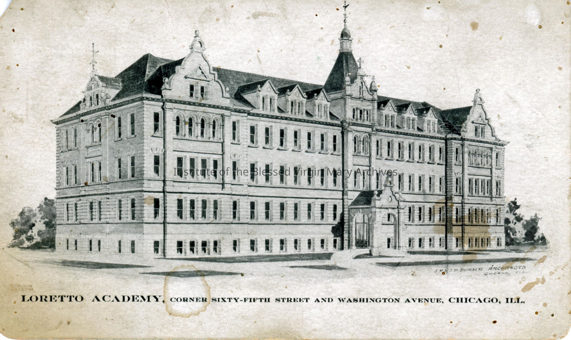 In 1905, the IBVM Sisters were invited to build a school in the Chicago community of Woodlawn. Located at 1447 East 65th Street, Loretto Academy formally opened in August of 1906 and operated until 1972. Following its closure, the school merged with Mercy High School to form Unity High School. Later, the building was sold to The Woodlawn Community Development Corporation and served in various capacities.Context