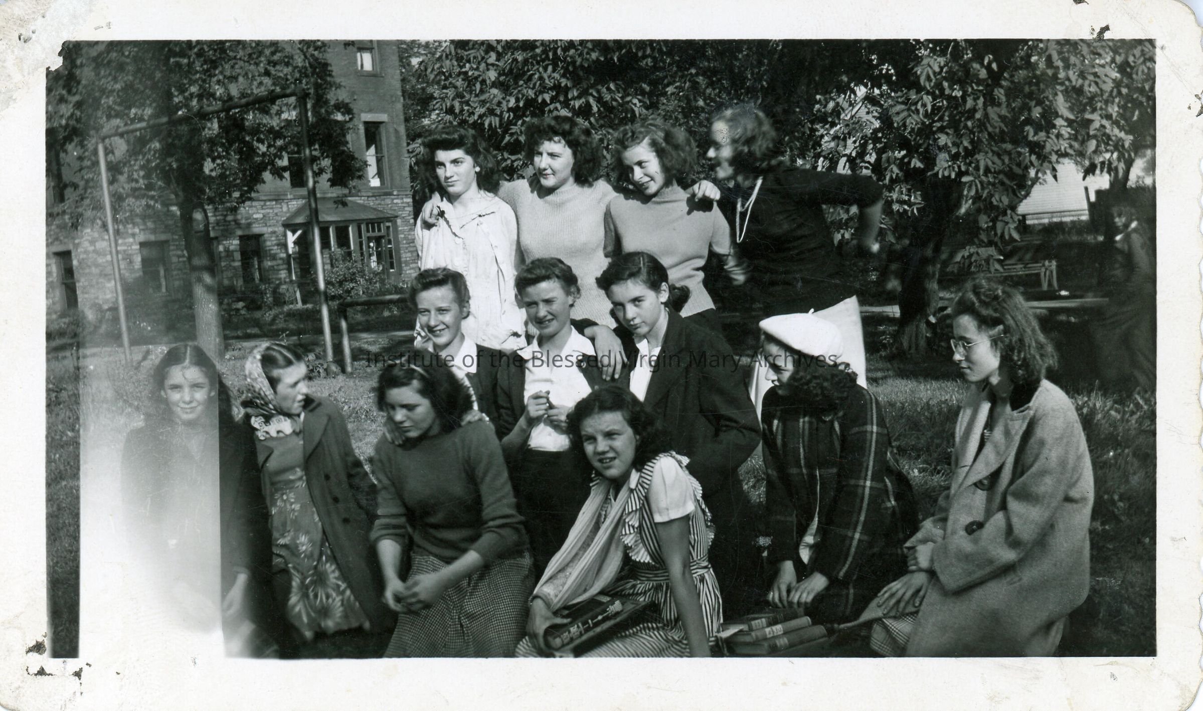 Students at Loretto Academy/Loretto High School in Sault Ste. Marie, Michigan. Founded in 1896, the academy's location at 377 Armory Place (pictured) opened in 1899 and underwent a substantial addition in 1910. Converted into a co-ed high school in 1944, it was demolished in 1966 after Loretto Catholic Central High School was constructed.
