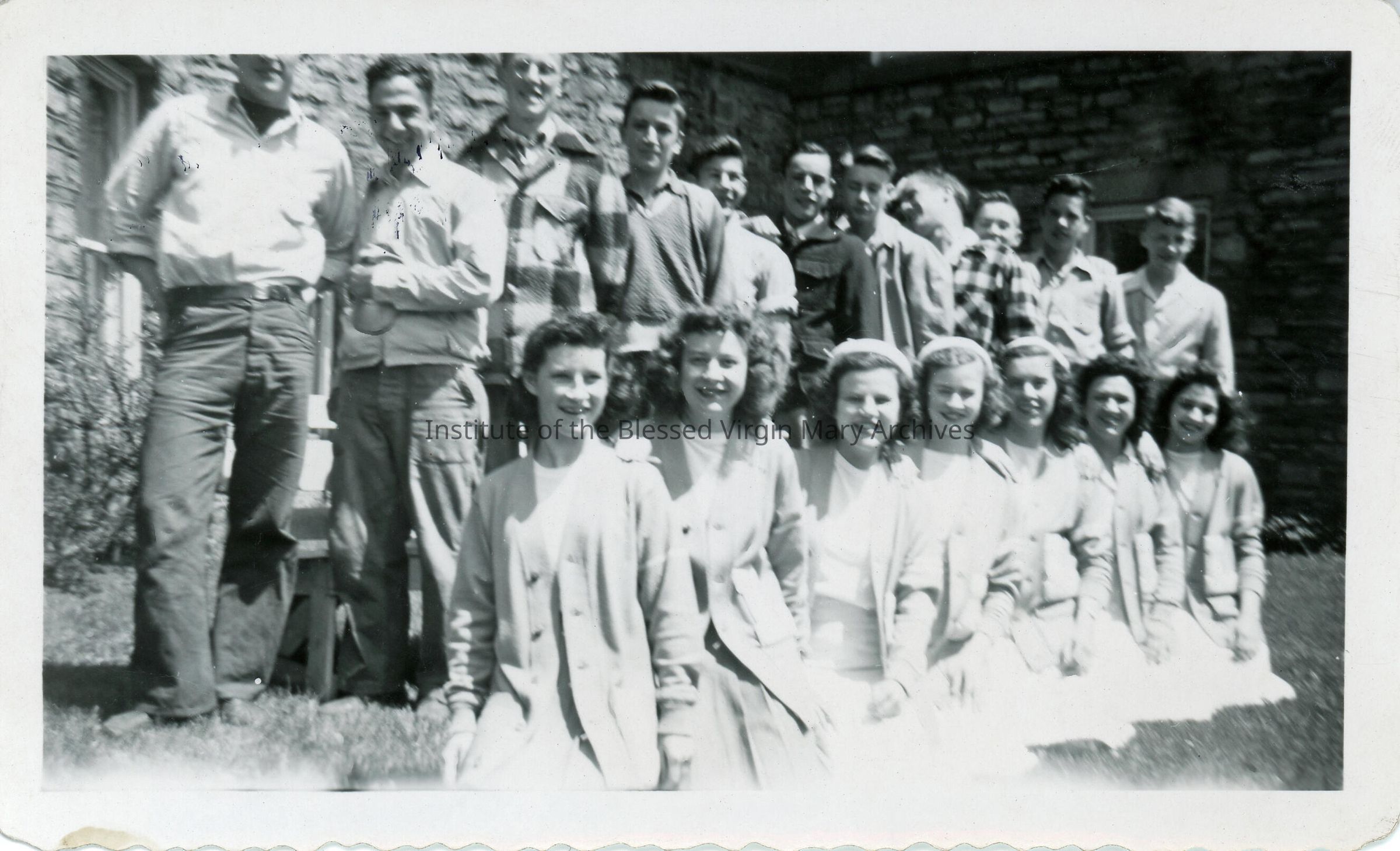 Students at Loretto Academy/Loretto High School in Sault Ste. Marie, Michigan. Founded in 1896, the academy's location at 377 Armory Place (pictured) opened in 1899 and underwent a substantial addition in 1910. Converted into a co-ed high school in 1944, it was demolished in 1966 after Loretto Catholic Central High School was constructed.