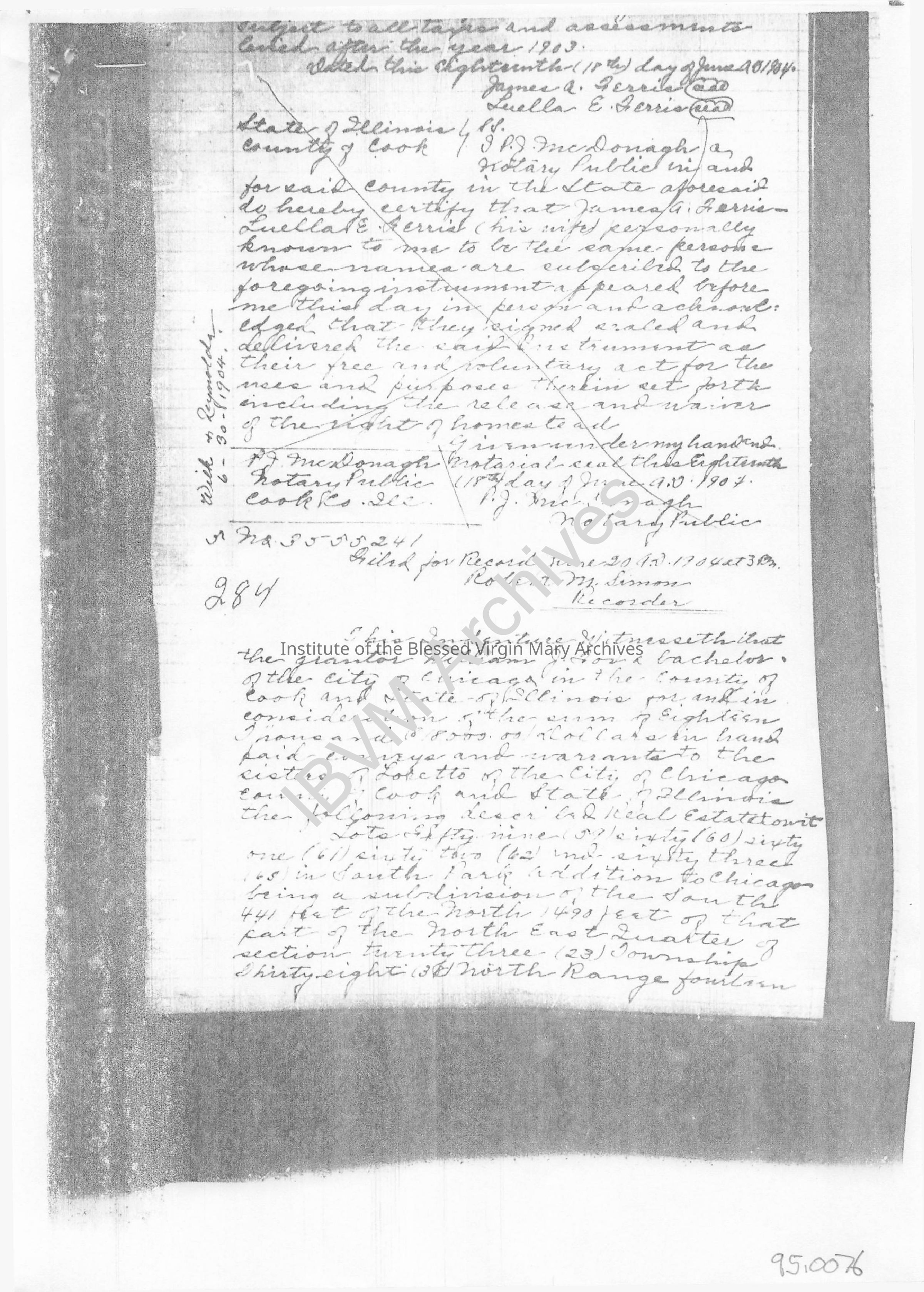 Loretto Academy Woodlawn Titles of Property, 1904 - 1909Entry/Object ID