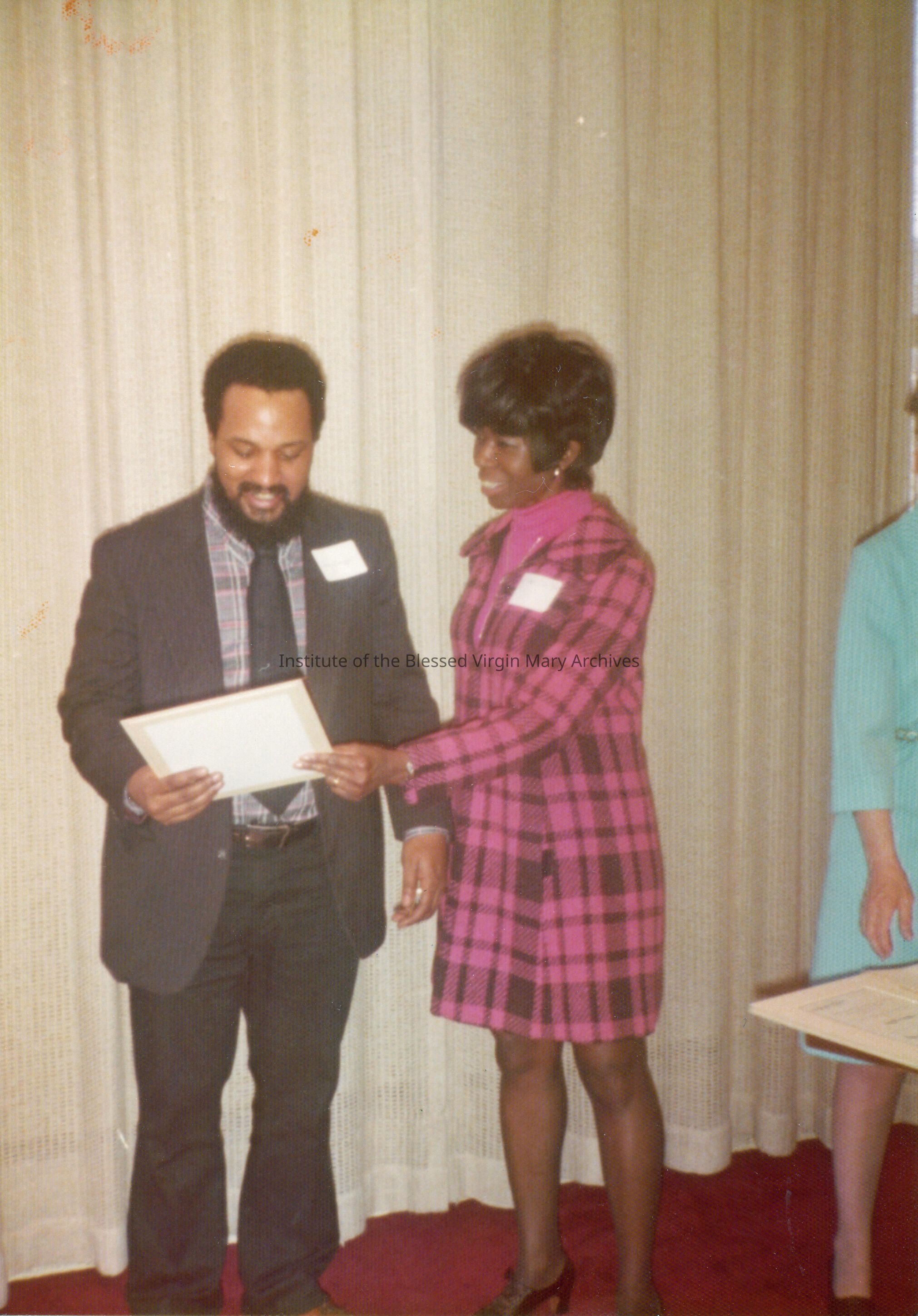 A ceremony, possibly graduation, for students of the Loretto Adult Education Center. Founded in 1964, the LAEC program worked to improve literacy, provide job training and award high school diplomas to low income adults and young adults.