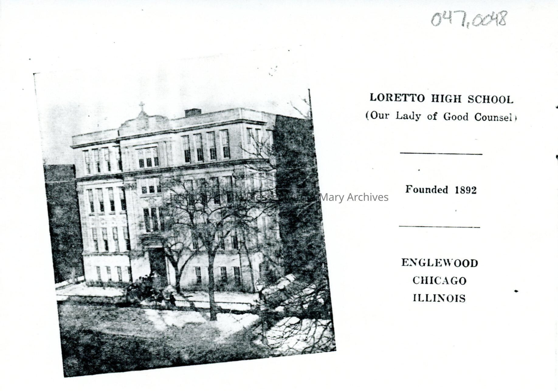 In 1892, IBVM Sisters established an education ministry at St. Bernard Grammar School in Englewood, Chicago. The following year, Loretto Academy (later renamed Loretto High School) opened. By 1962, the high school had closed and was merged with Loretto Academy Woodlawn. Five years later, the building and neighboring IBVM Convent were sold to the Chicago Board of Education. St. Bernard Grammar School operated until closing in the late 1980s.Context