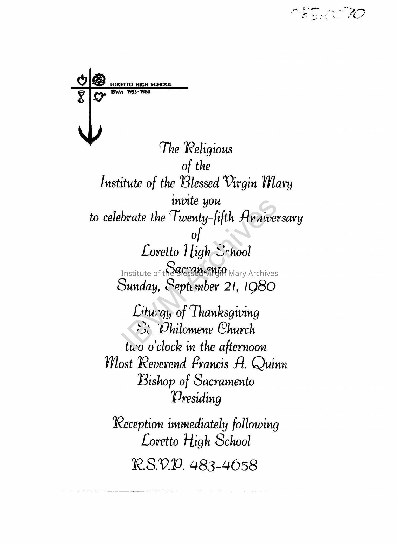 Loretto High School Anniversary InvitationEntry/Object ID