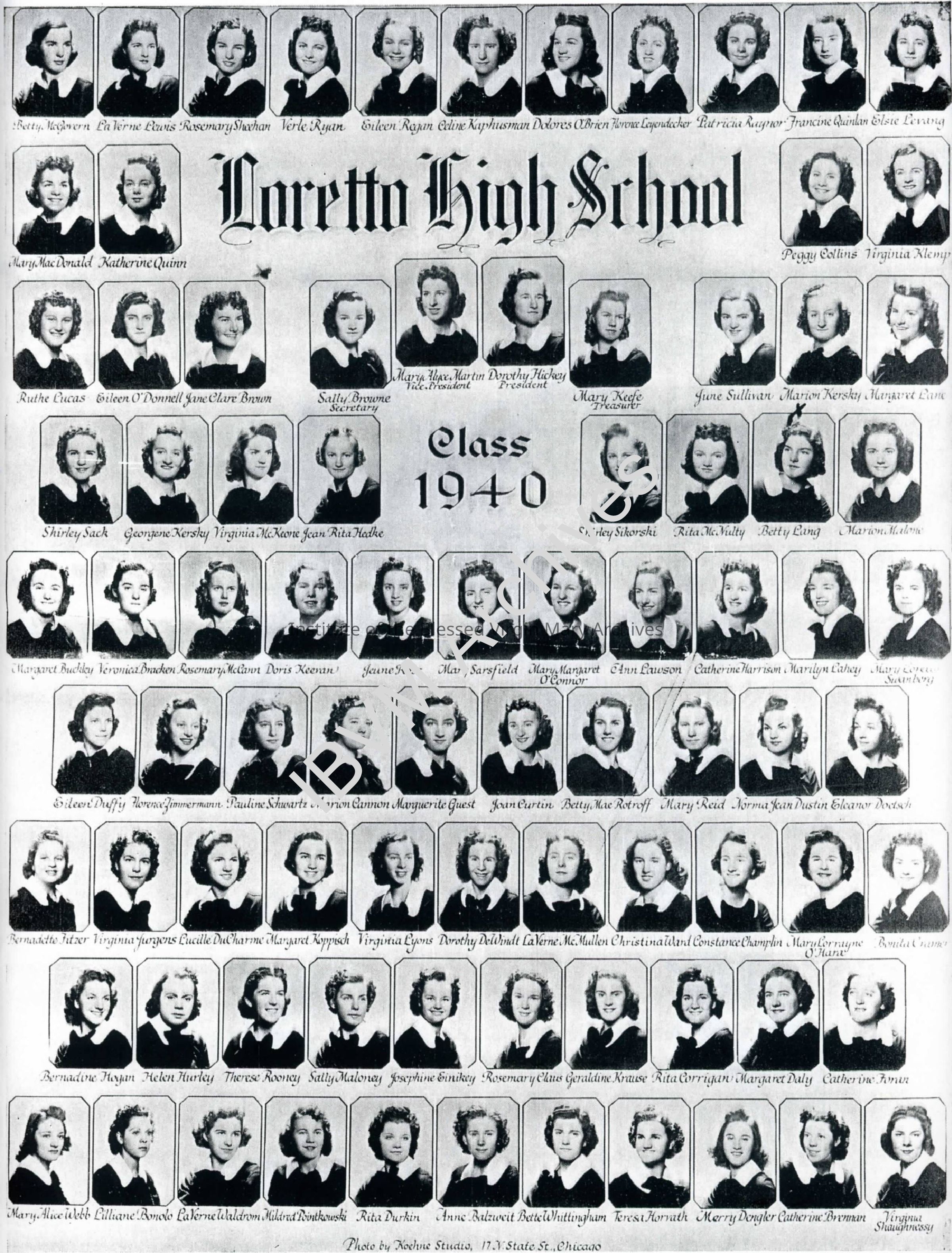 Loretto High School Class of 1940. The school was located at 6535 Stewart Avenue in Englewood, Chicago.
