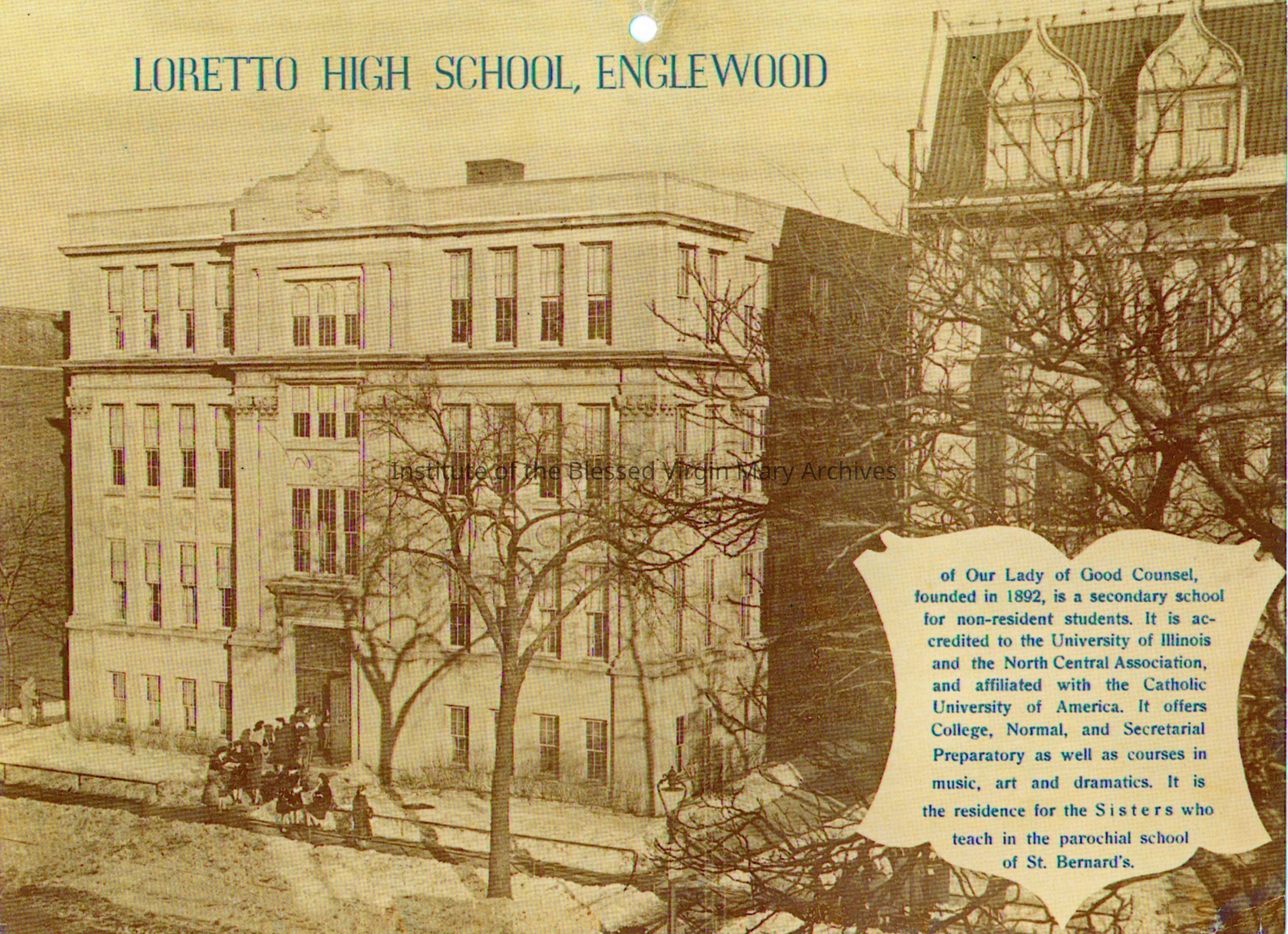 In 1892, IBVM Sisters established an education ministry at St. Bernard Grammar School in Englewood. The following year, Loretto Academy (later Loretto High School) opened as the second Catholic high school in Chicago. In 1962, Loretto High School closed and was merged with Loretto Academy Woodlawn. Five years later, the building and neighboring IBVM Convent were sold to the Chicago Board of Education. St. Bernard Grammar School continued operating until closing in the late 1980s.Context
