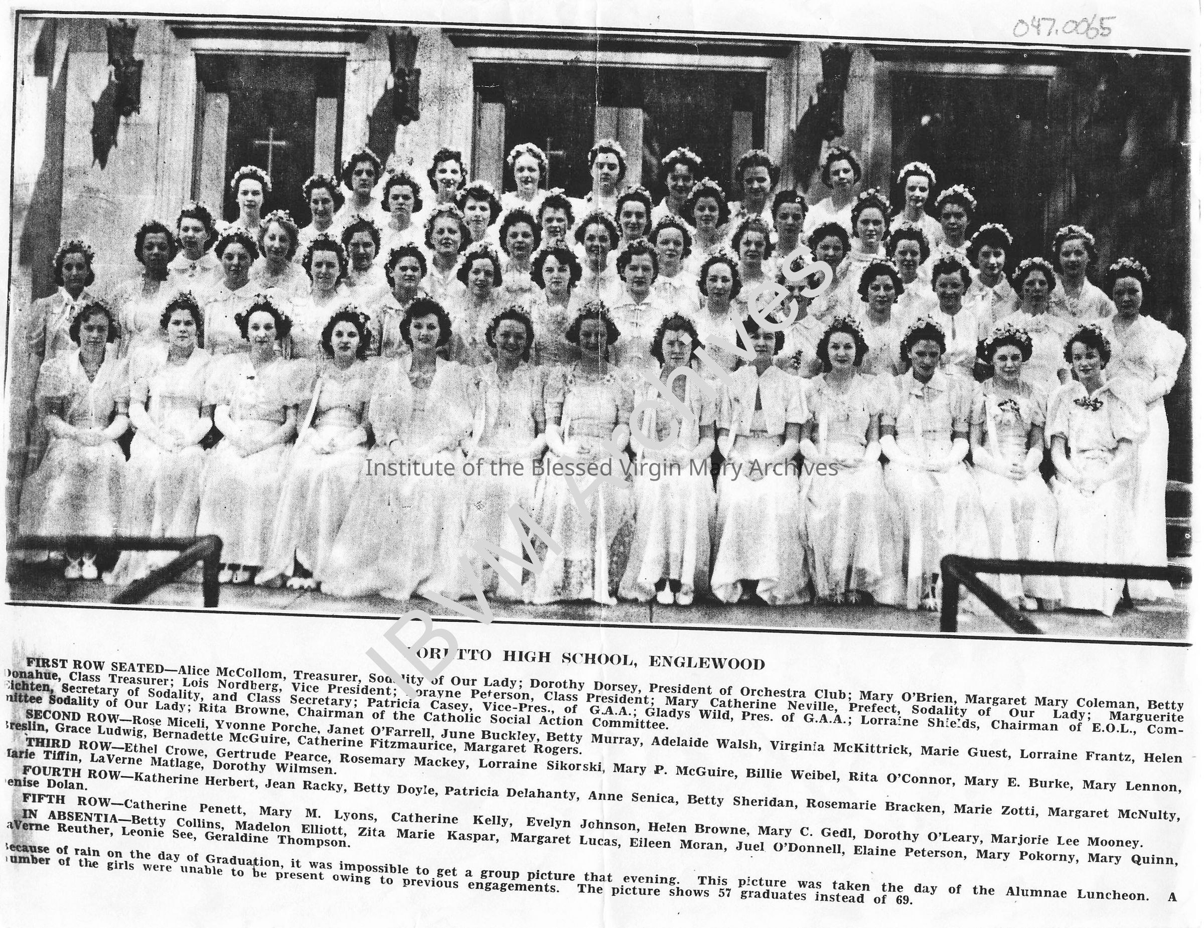 Loretto High School graduation photo taken the day of the Alumnae Luncheon. The school was located at 6535 Stewart Avenue in Englewood, Chicago.