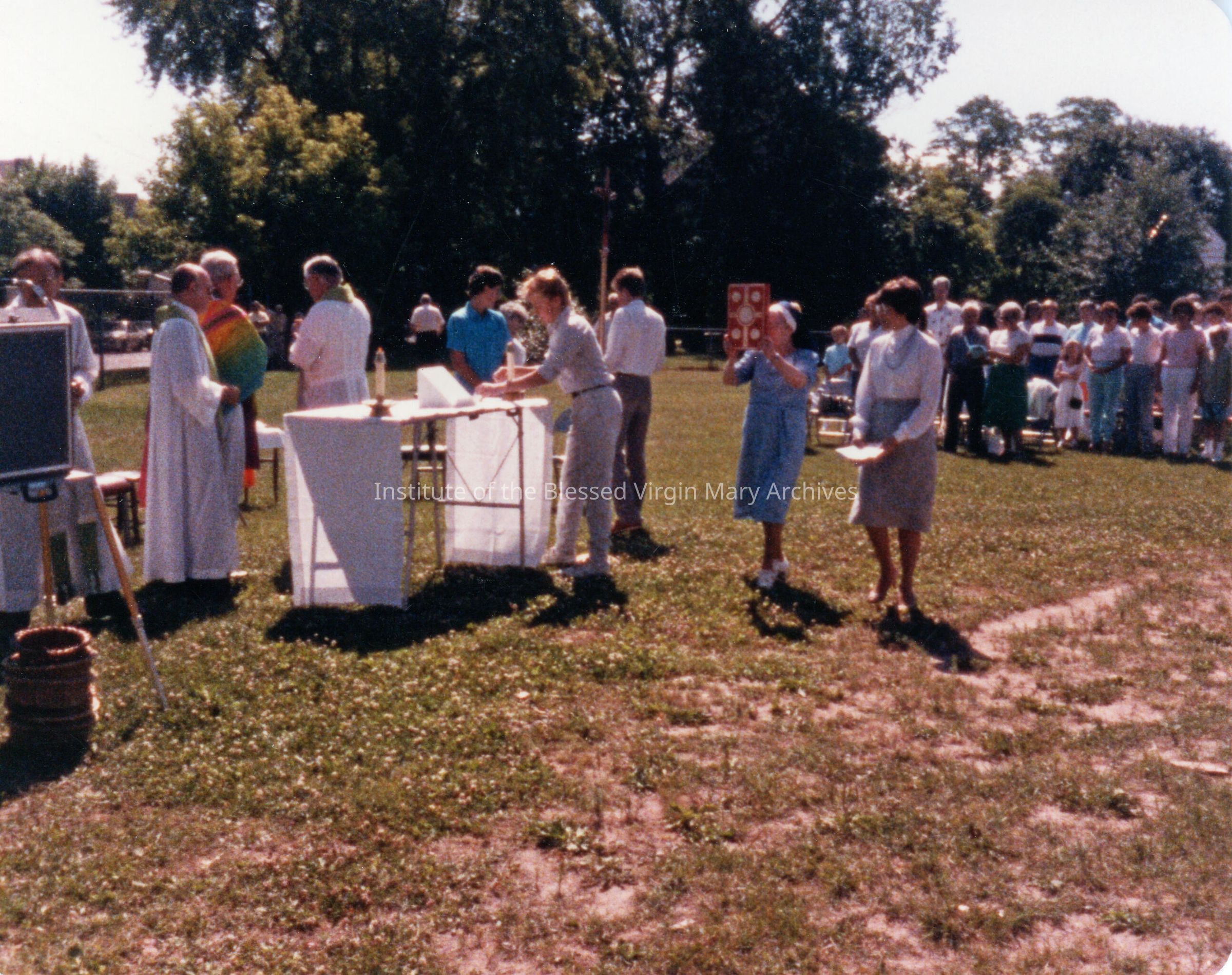 Loretto Park dedication ceremony in Sault Ste. Marie, Michigan. Sister Geraldine (Vivian) Bliss is carrying the Lectionary. The event was held on the former site of Loretto Academy. Founded in 1896, the academy's location at 377 Armory Place (pictured) opened in 1899 and underwent a substantial addition in 1910. Converted into a co-ed high school in 1944, it was demolished in 1966 after Loretto Catholic Central High School was constructed.