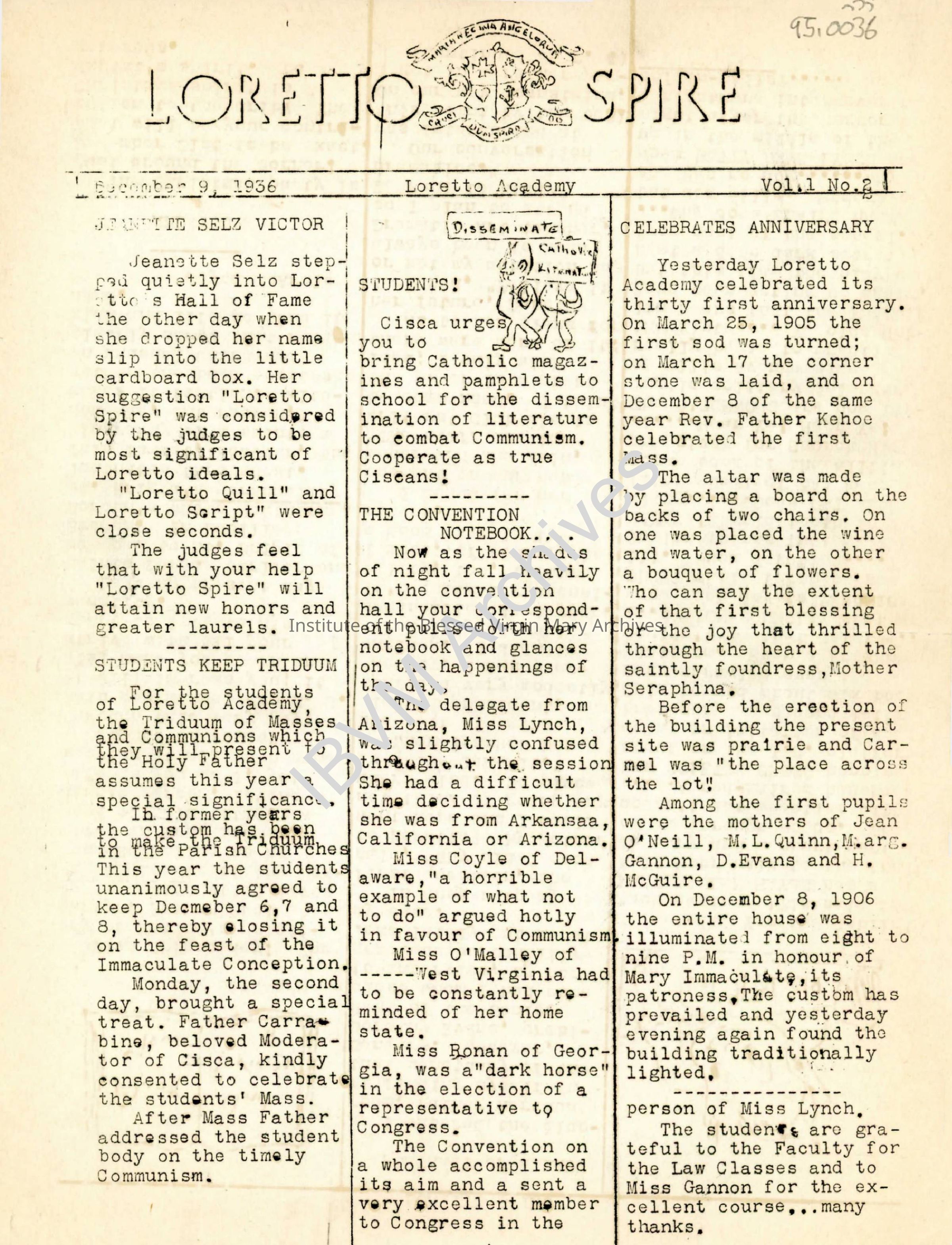 Loretto Spire Newsletter, Volume 1 No. 2, 1936Entry/Object ID