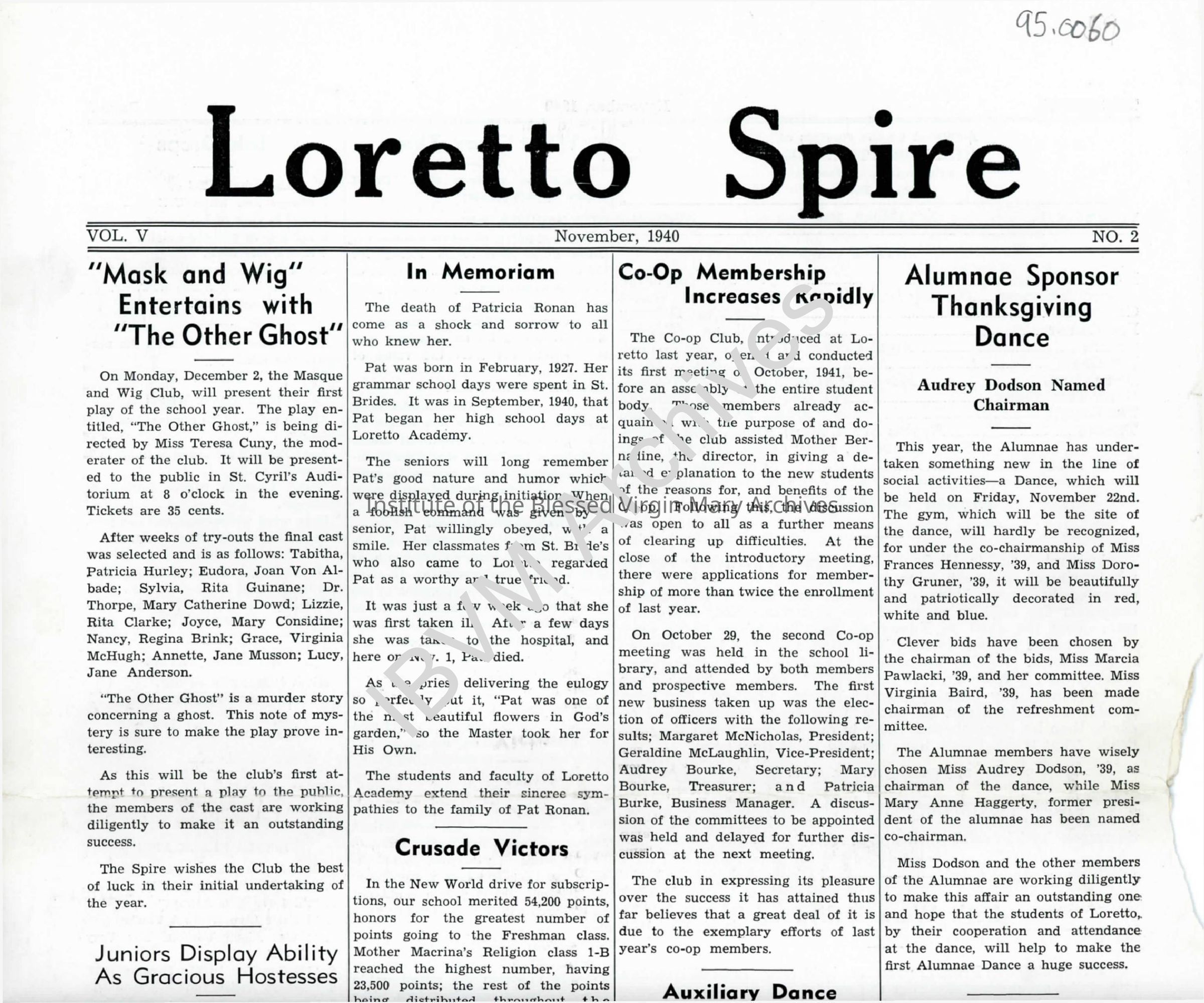 Loretto Spire, Volume V No. 2, 1940Entry/Object ID