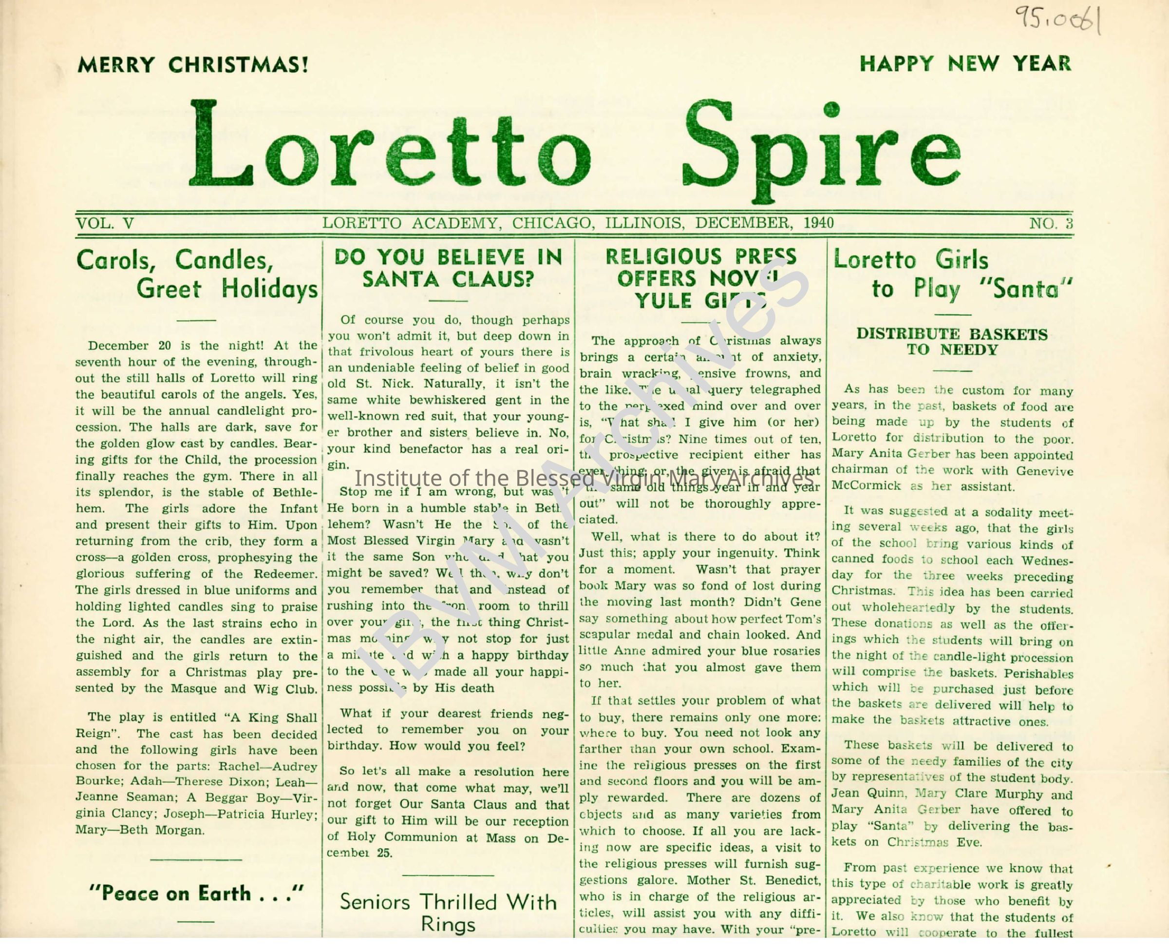 Loretto Spire, Volume V No. 3, 1940Entry/Object ID