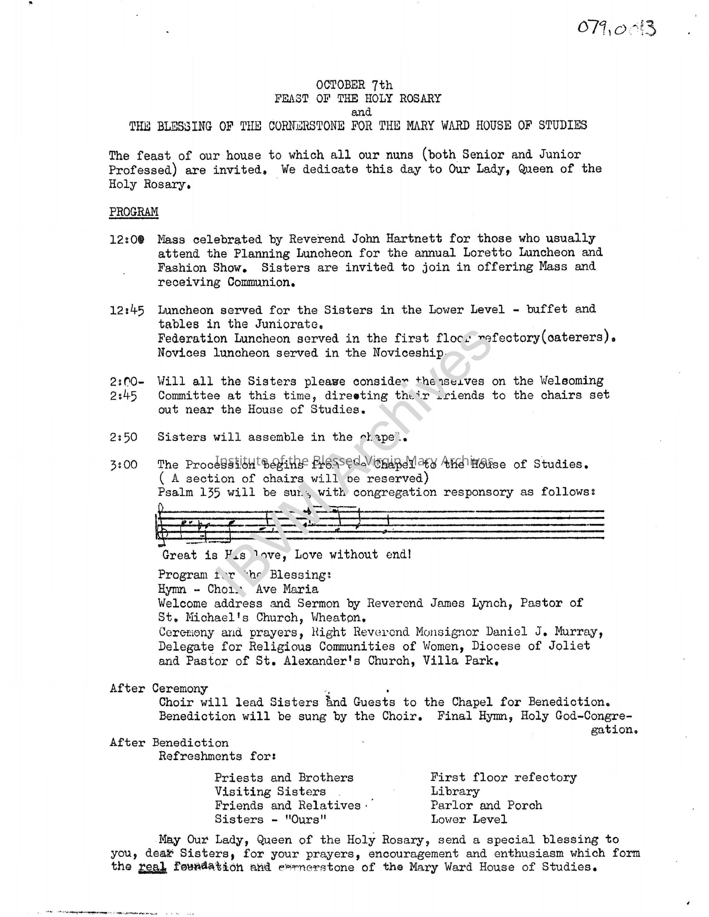 Mary Ward House of Studies Cornerstone Blessing ProgramEntry/Object ID