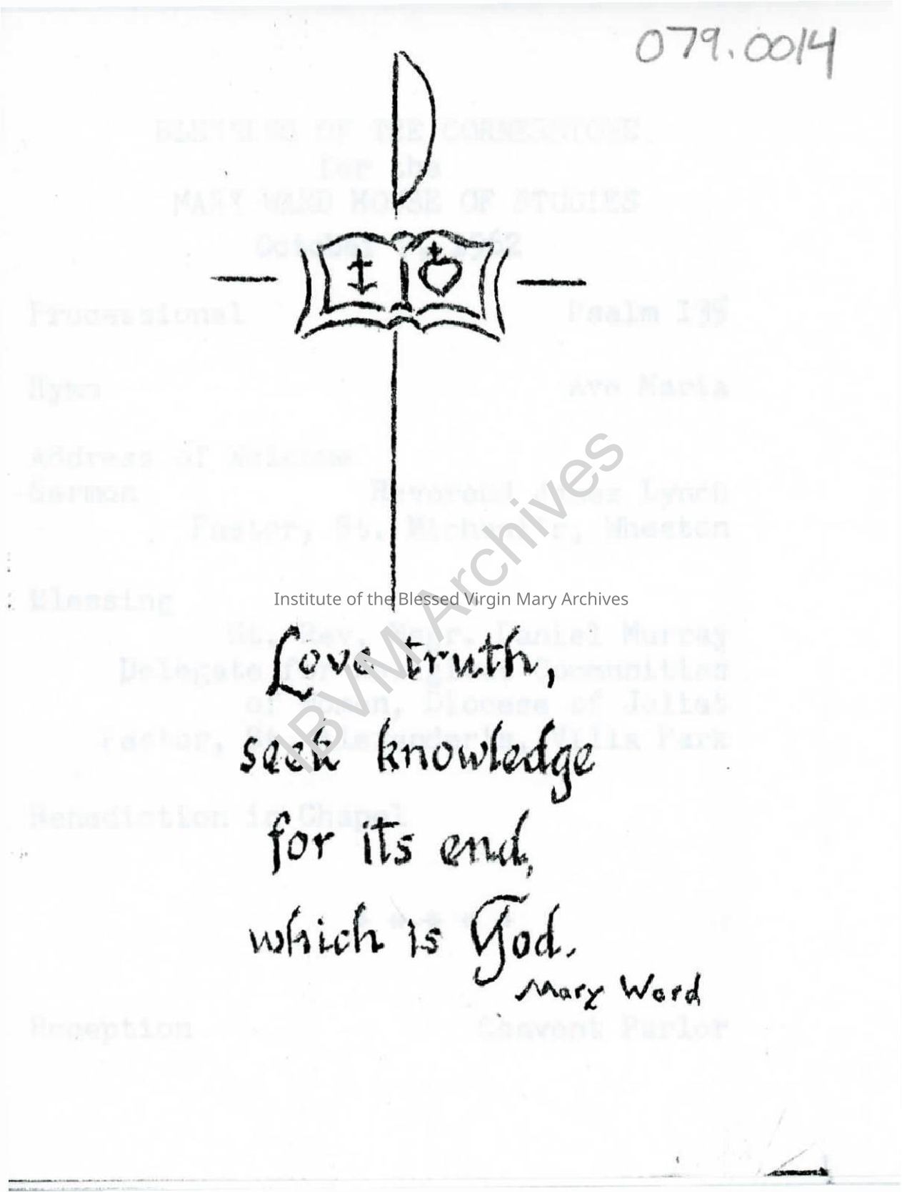 Mary Ward House of Studies Cornerstone Blessing ProgramEntry/Object ID